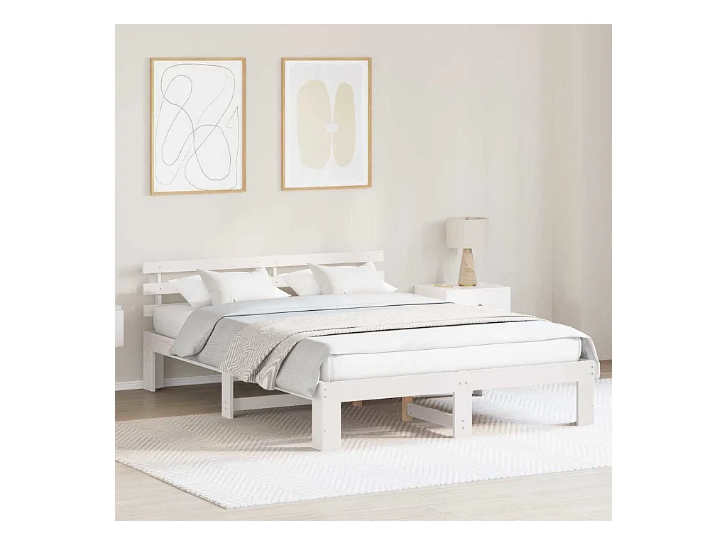 Wit bedframe 140 x 200 cm Massief grenenhout