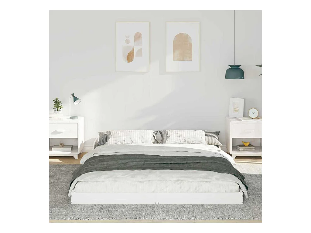 Wit bedframe 140 x 220 cm Massief grenenhout