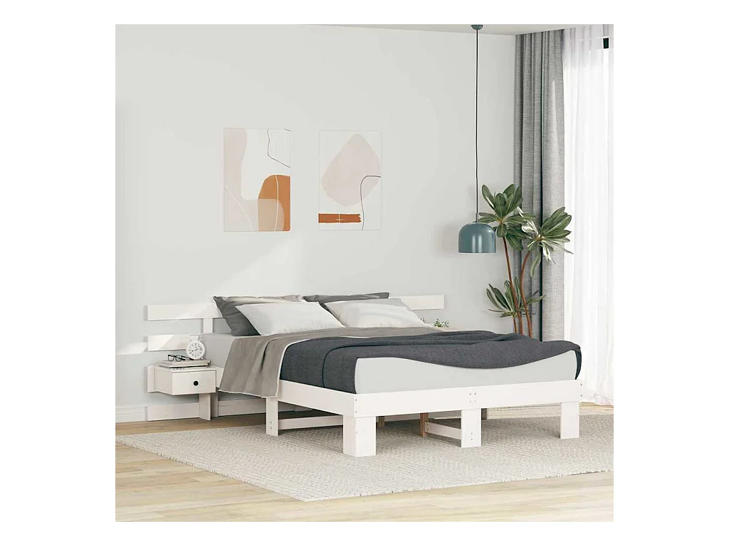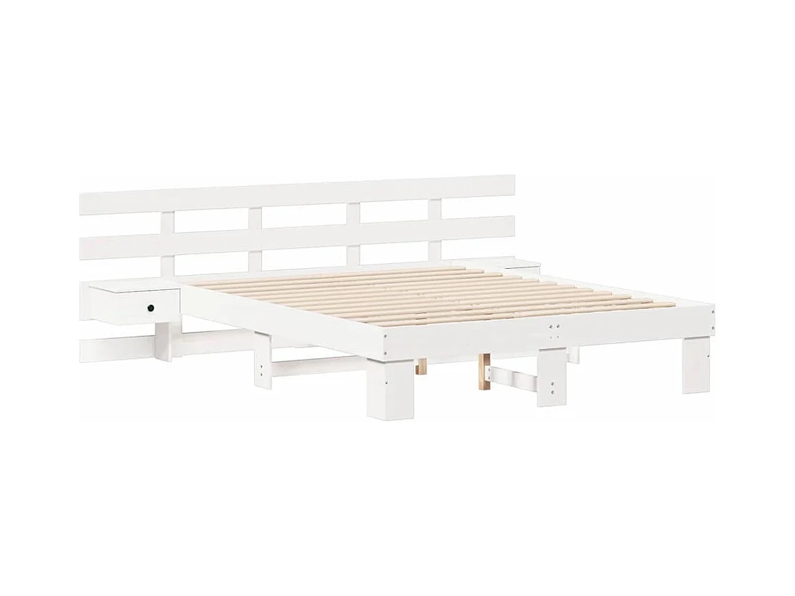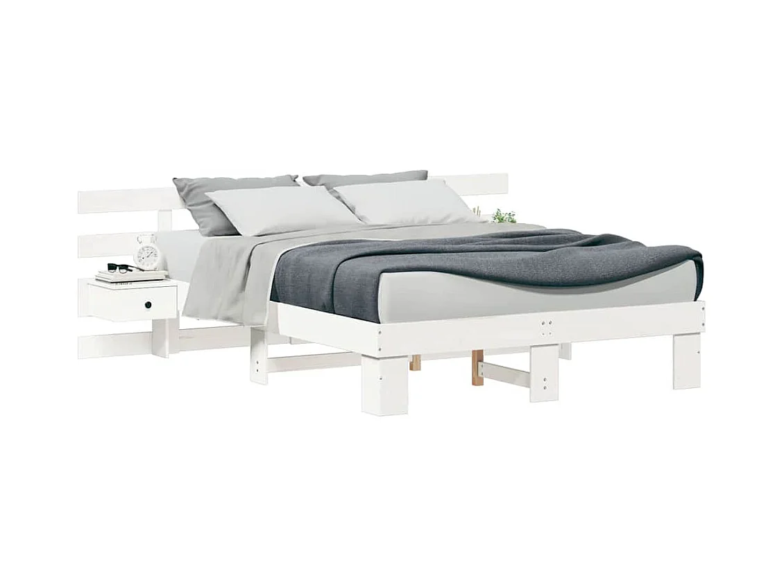 Bedframe met nachtkastjes Wit Massief grenenhout