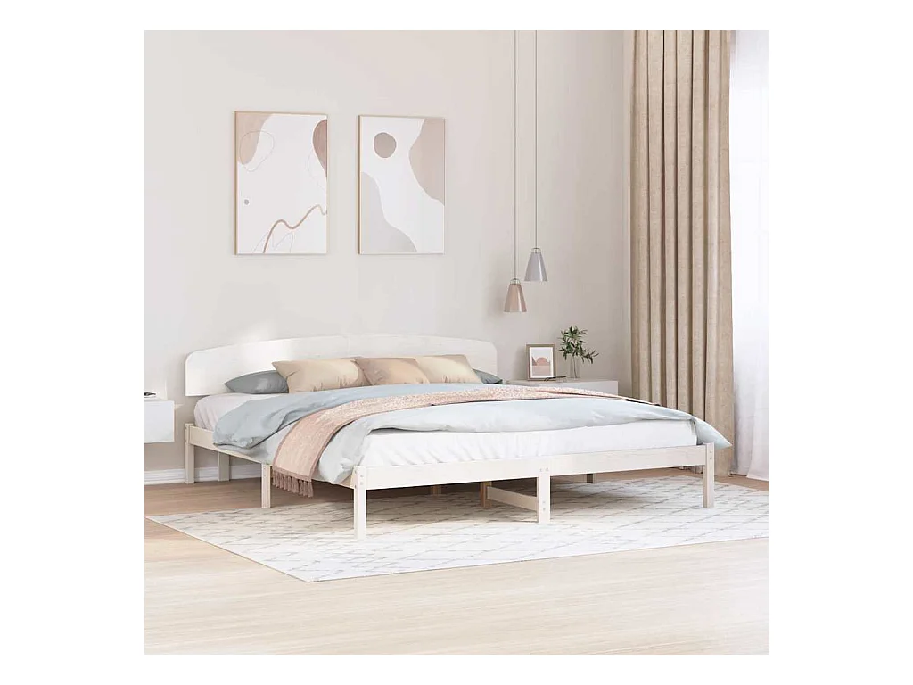 Wit bedframe 180 x 220 cm Massief grenenhout