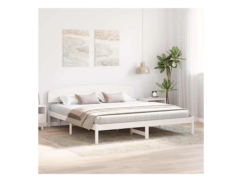Wit bedframe 180 x 200 cm Massief grenenhout