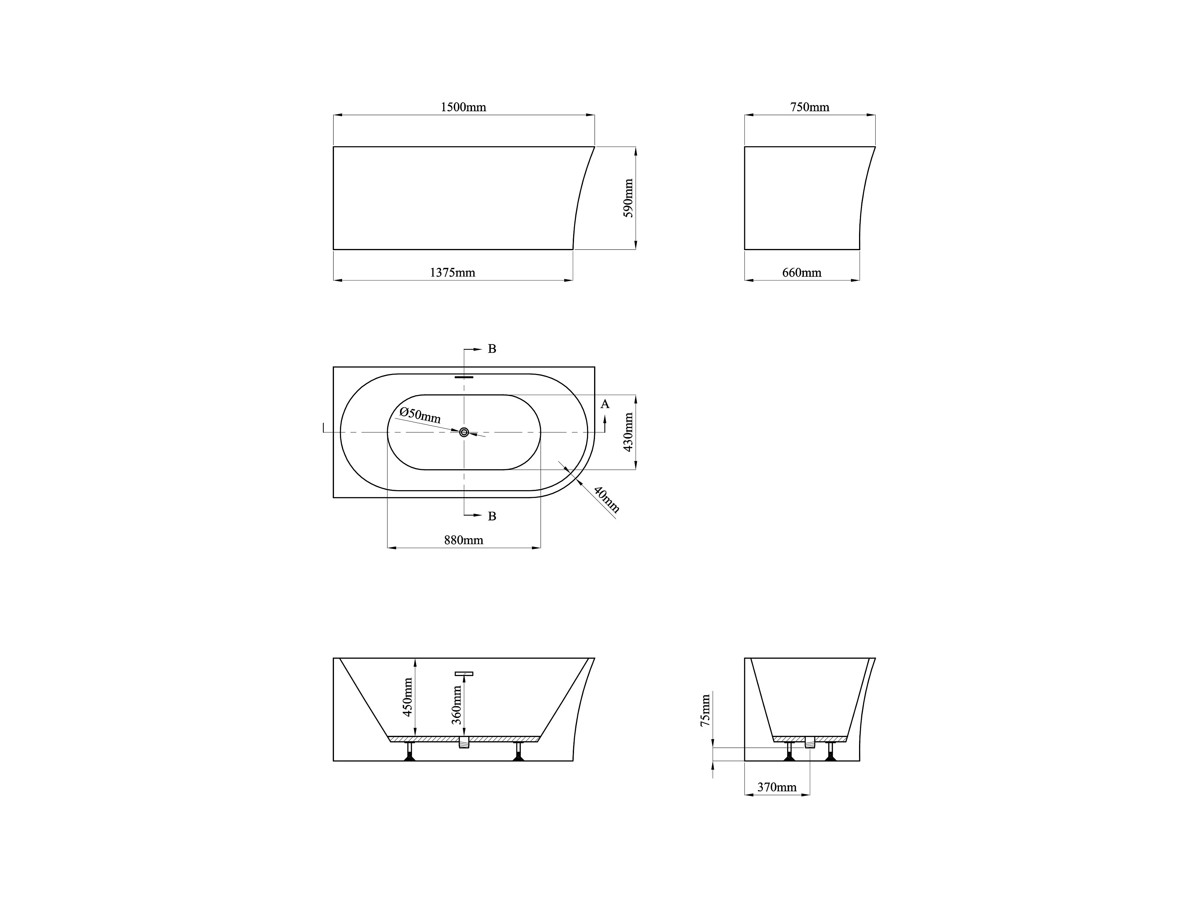 Wit douchebad met draaiend badscherm - 201 liter - Linkse hoek - PONTICOLA