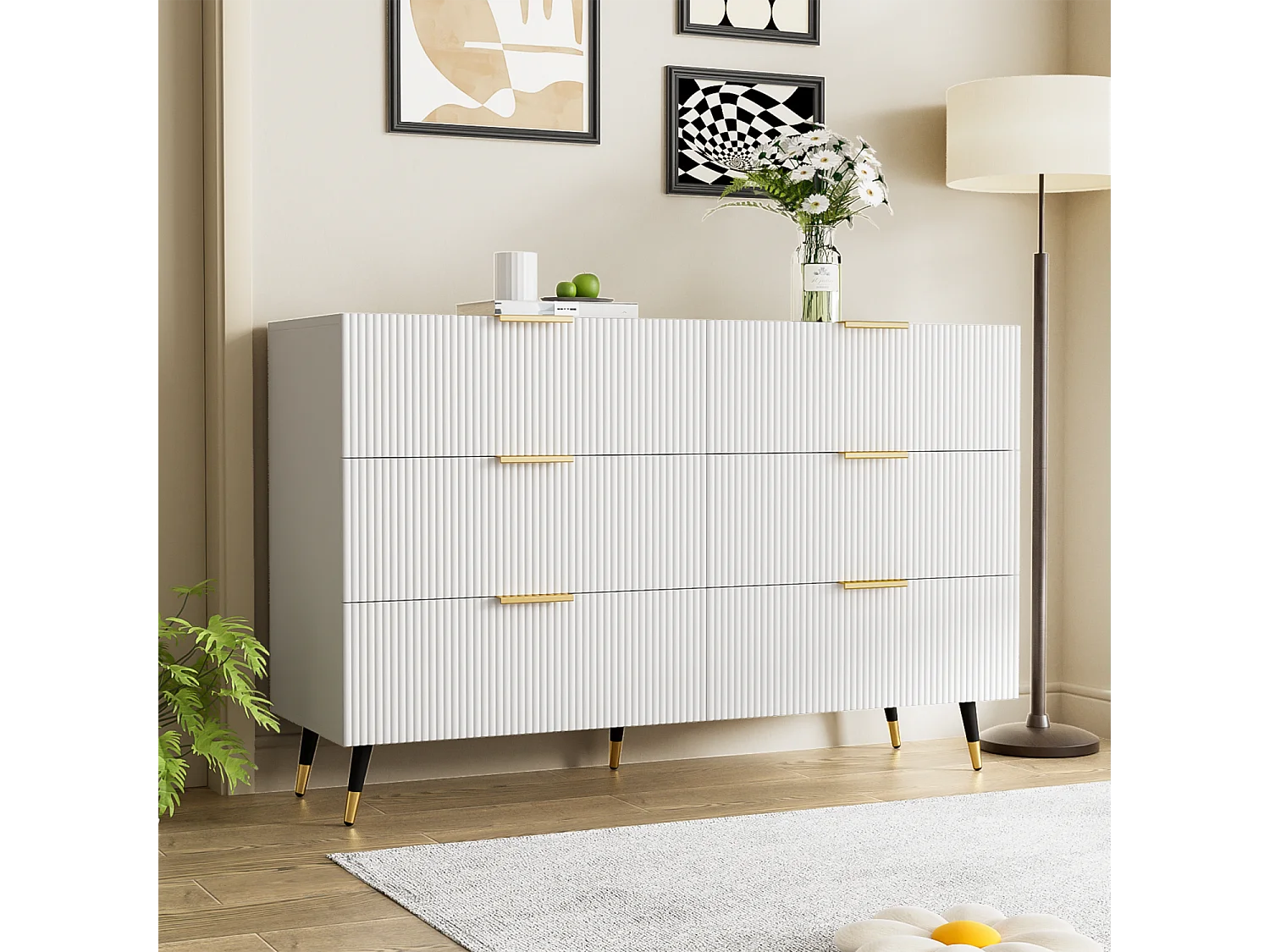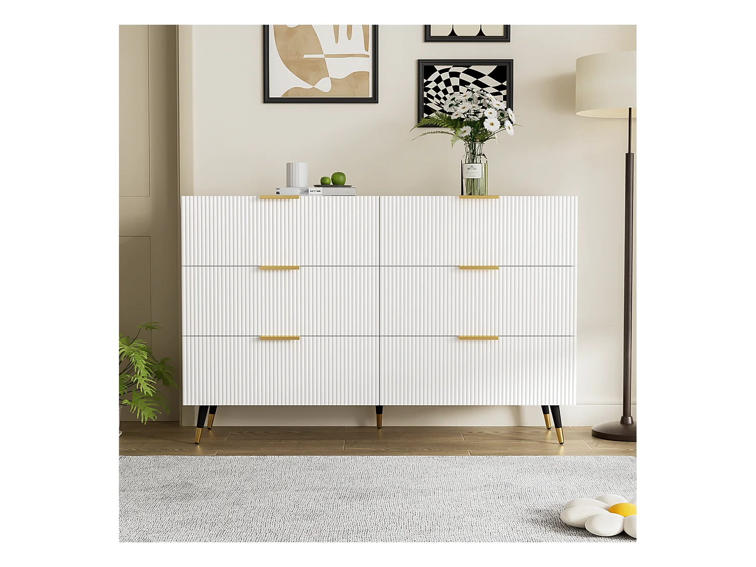 Wit dressoir, elegant dressoir met 6 opberglades, gouden handgrepen, voor woonkamer en slaapkamer