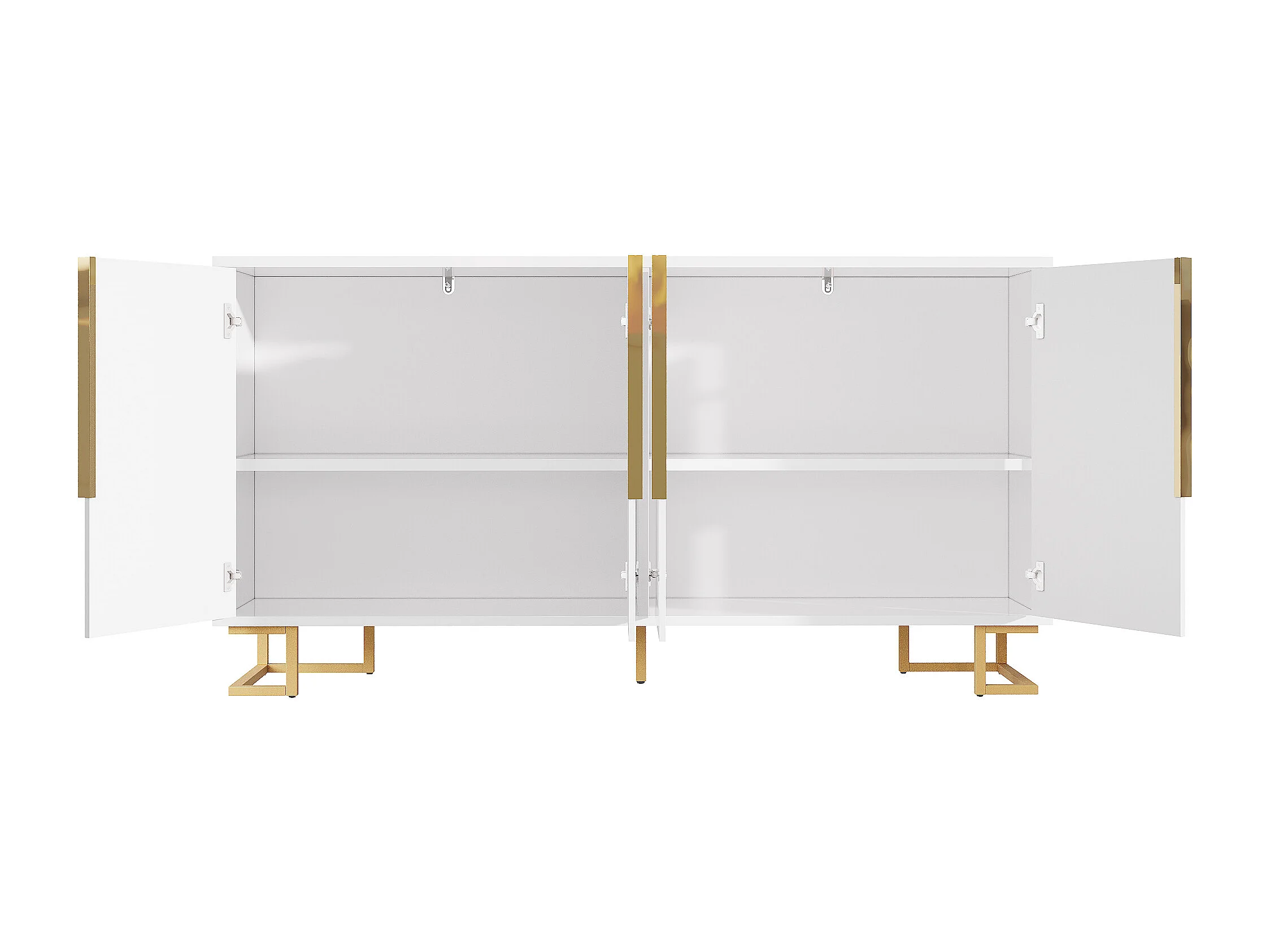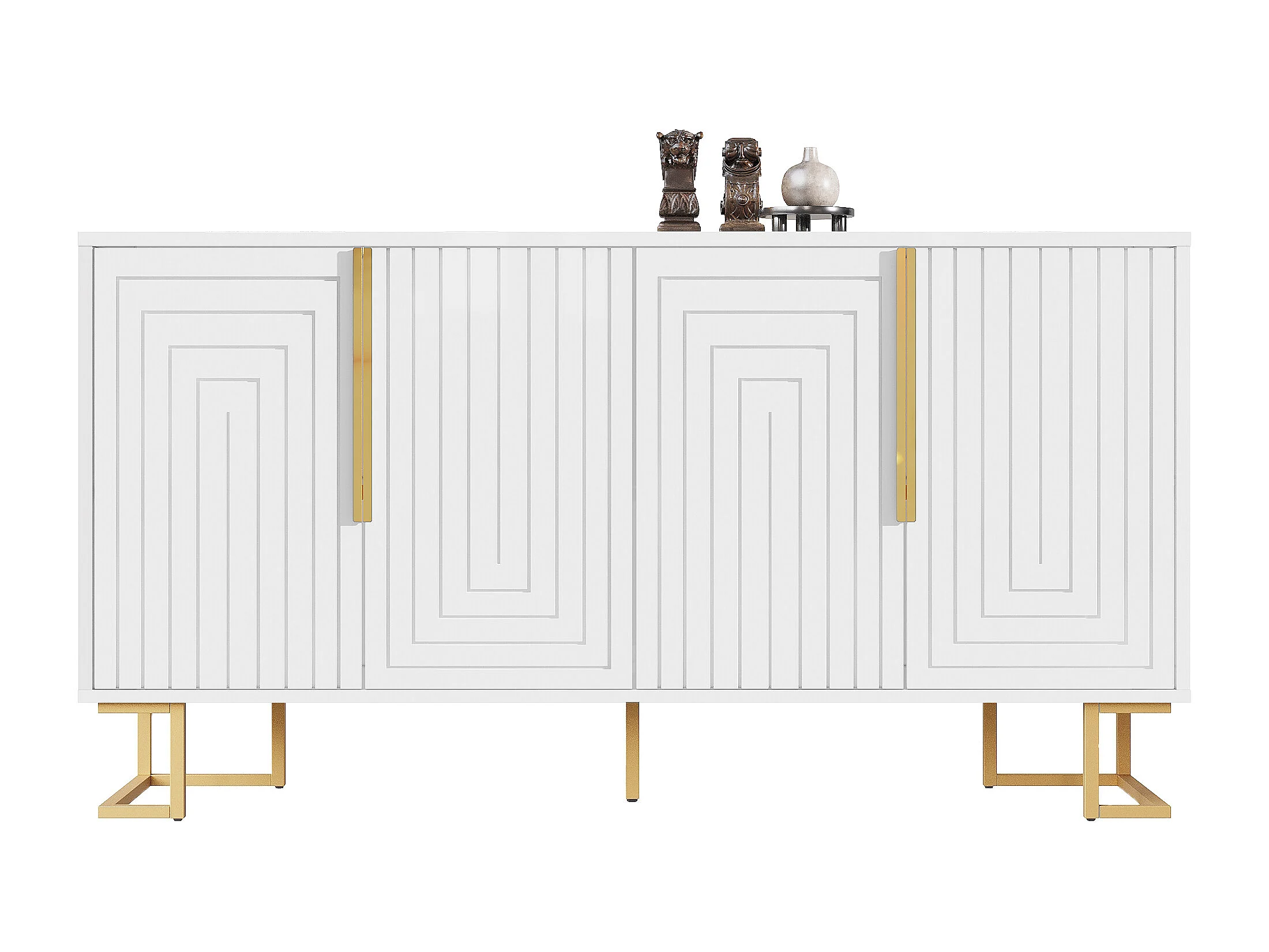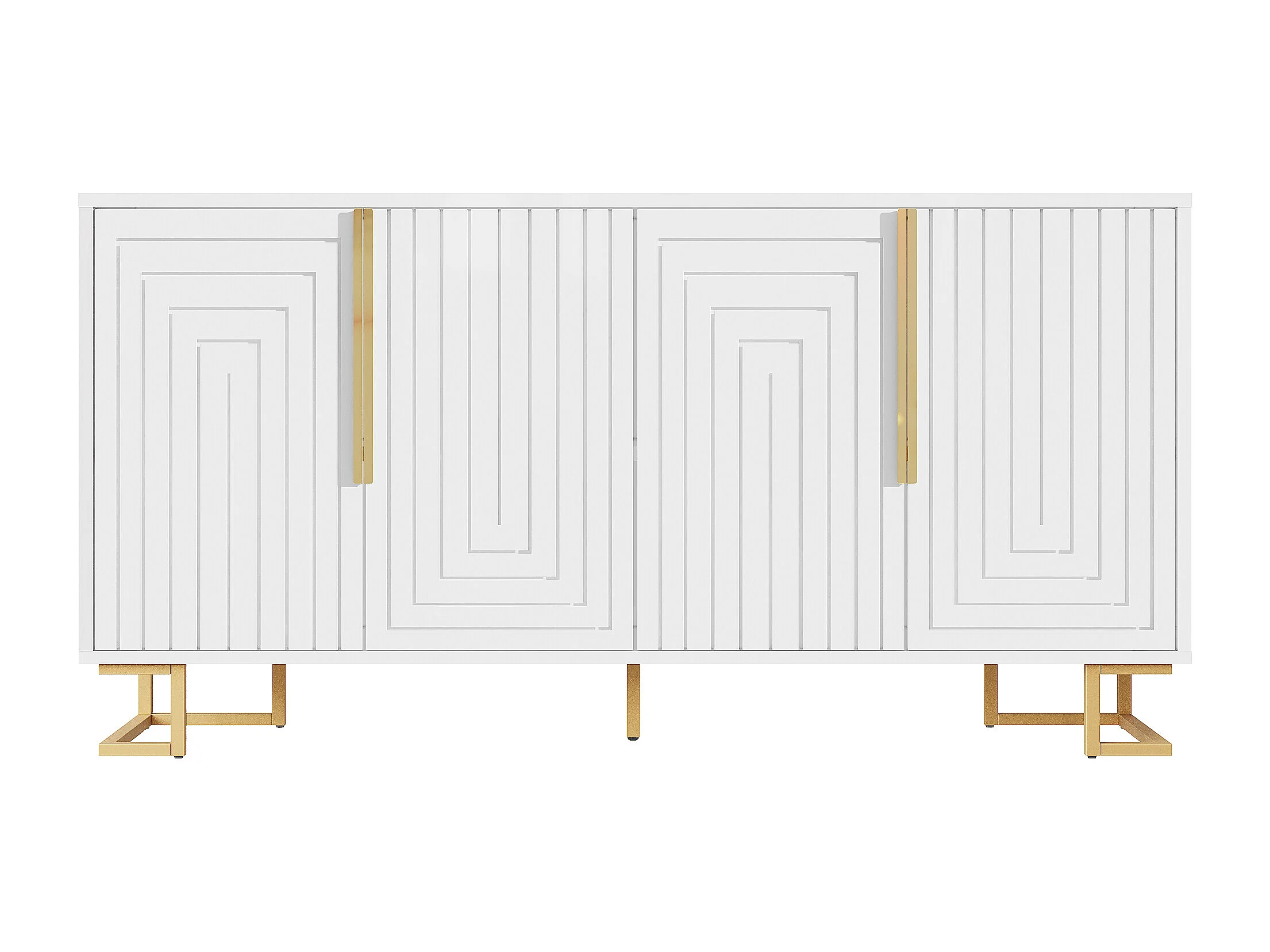 Wit dressoir met geometrisch design, gouden handgrepen en poten, MDF, (152x40x75 cm)
