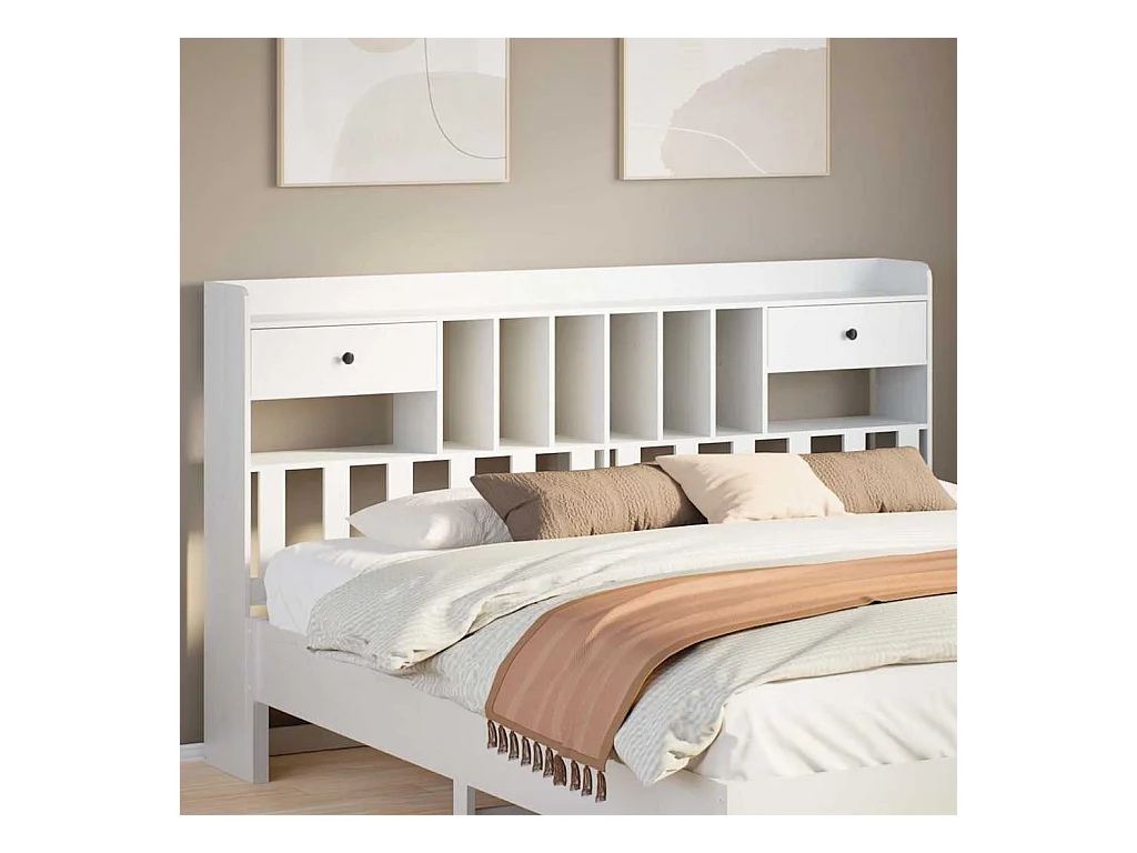 Wit hoofdbord met opbergruimte 180 cm massief grenenhout
