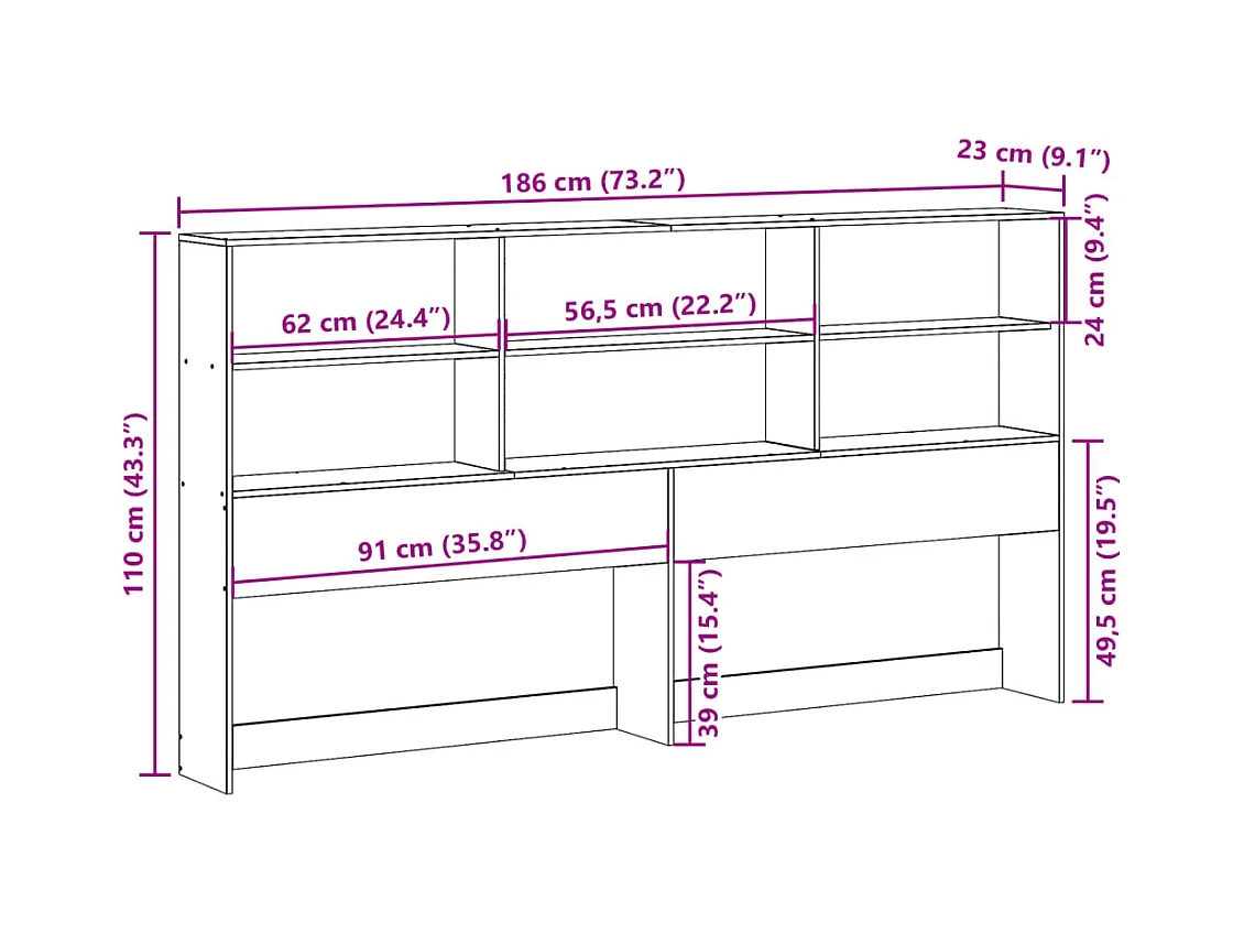 Wit hoofdbord met opbergruimte 180 cm massief grenenhout
