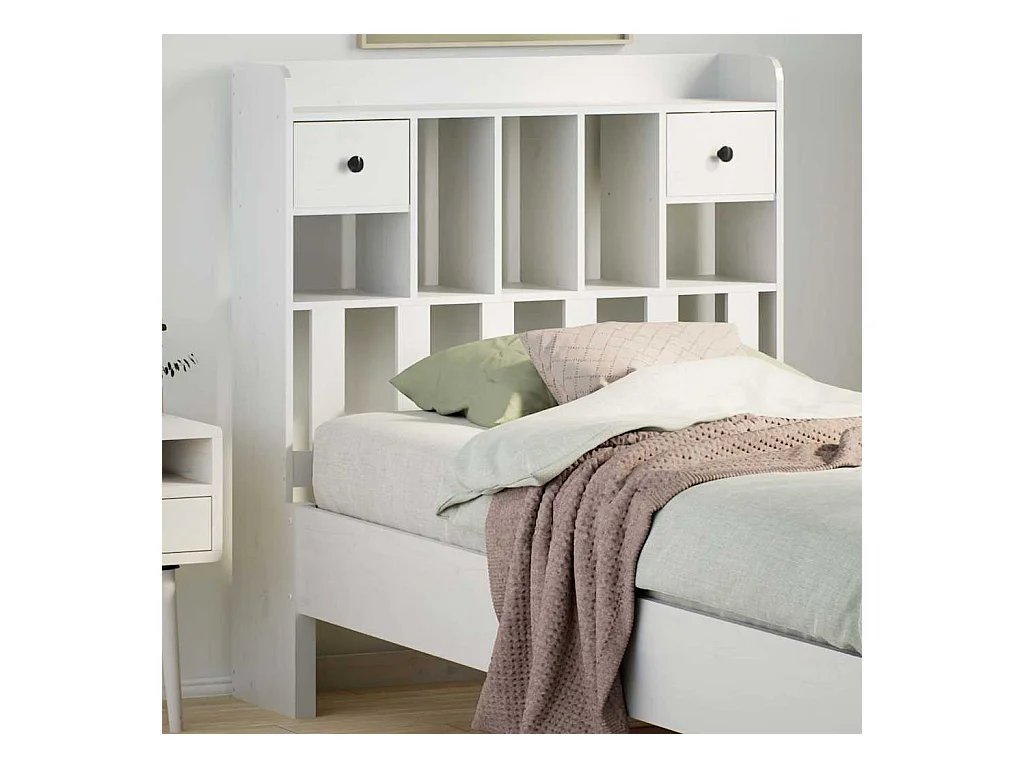 Wit hoofdbord met opbergruimte 90 cm massief grenenhout