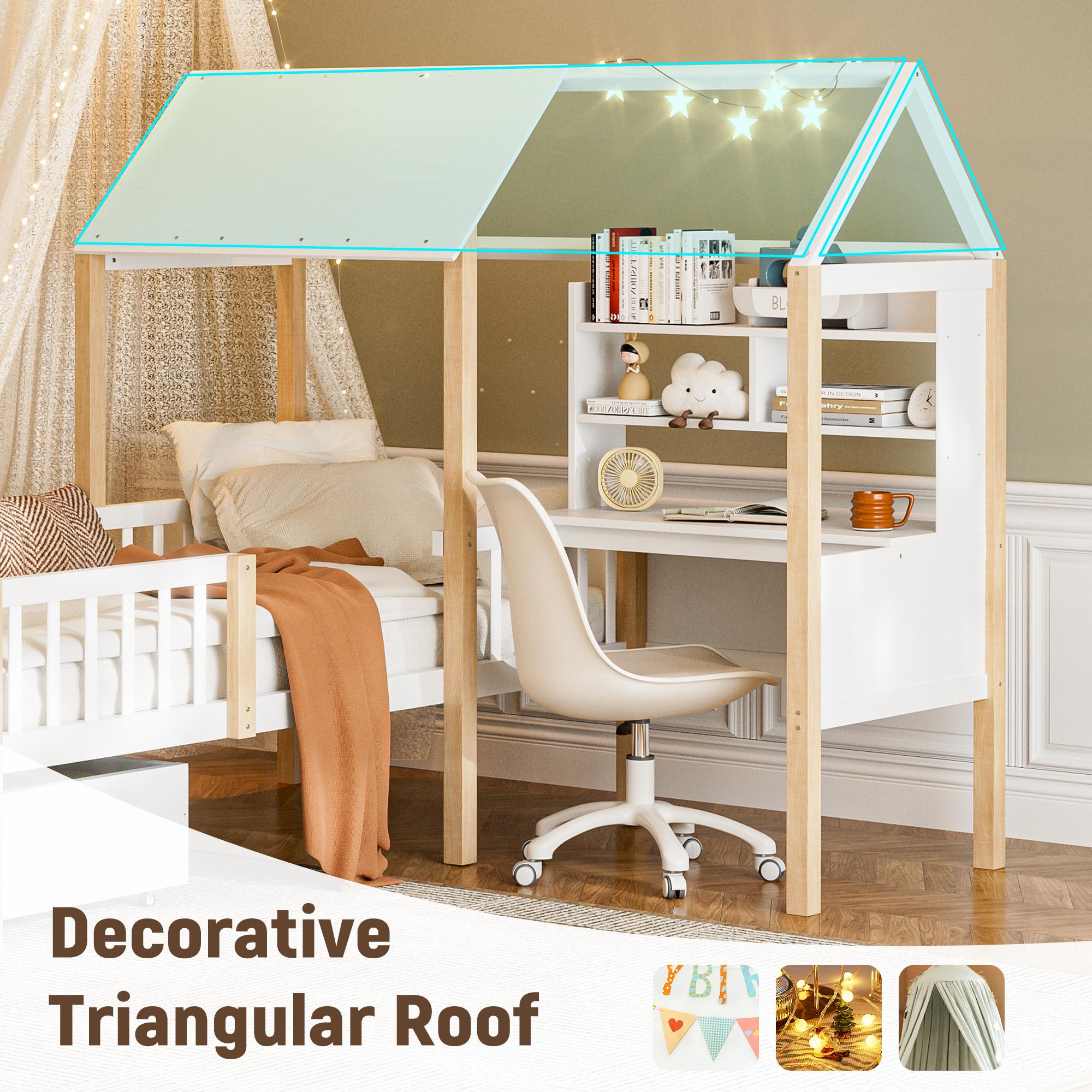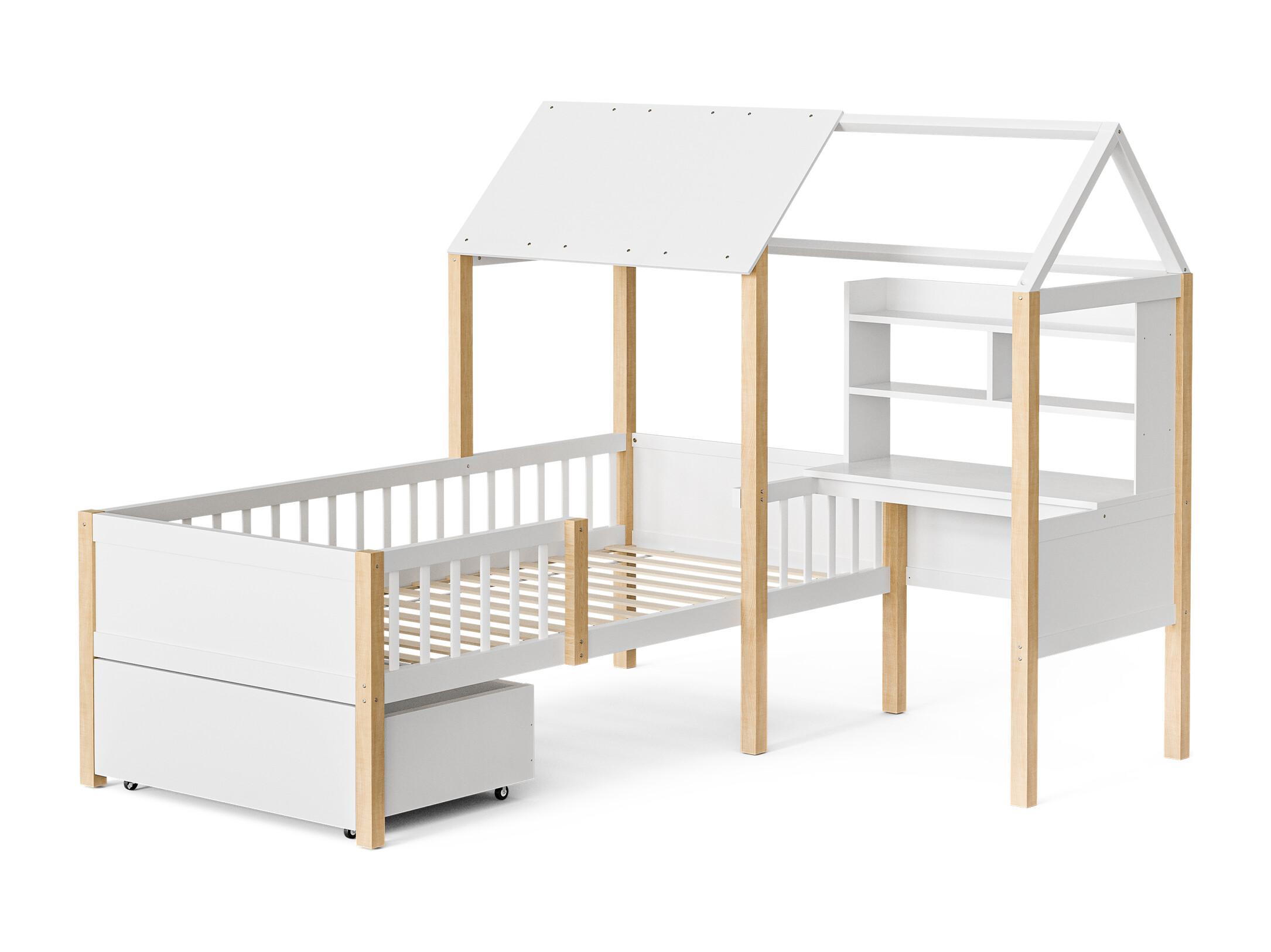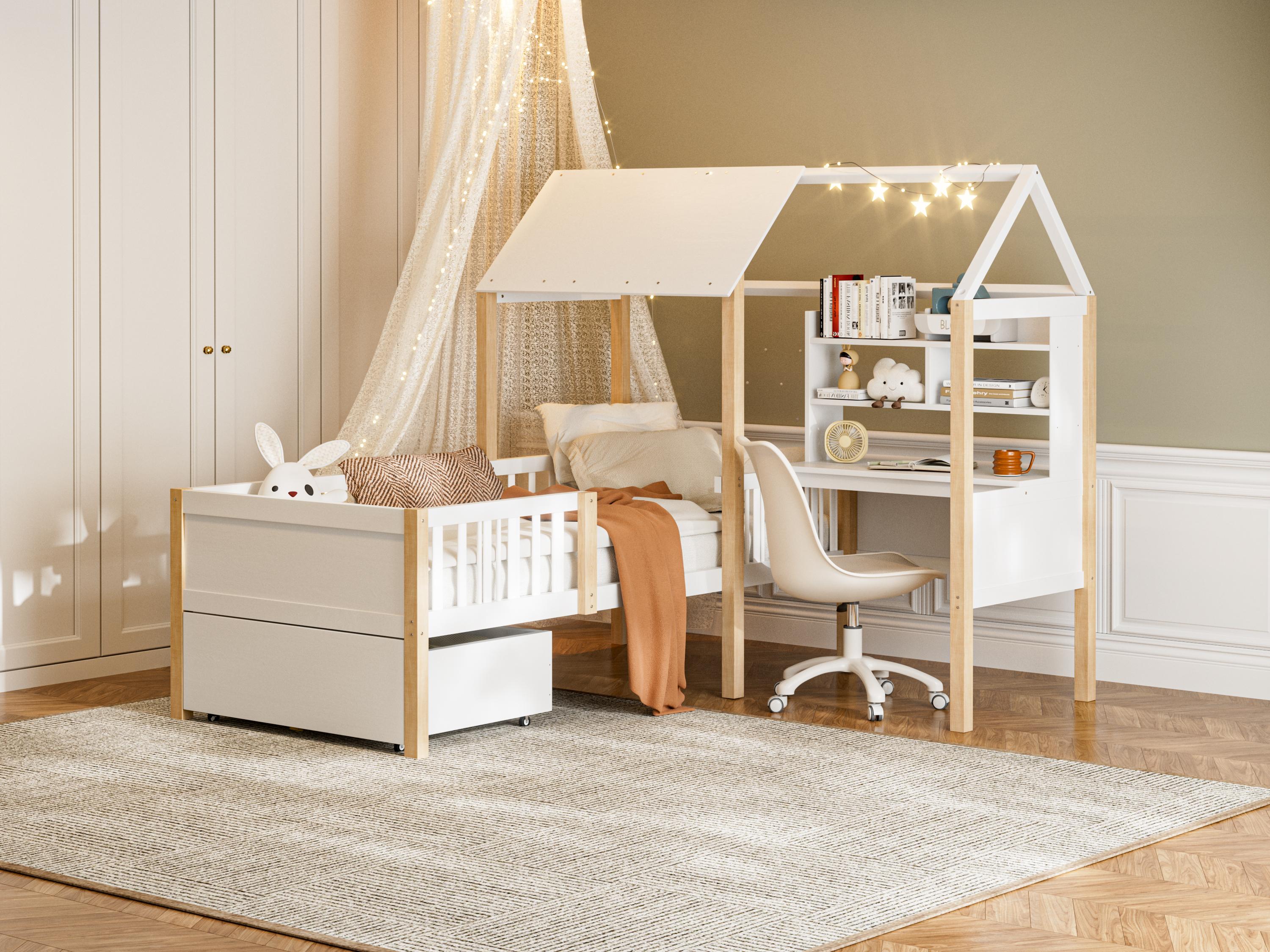 Wit hoogslaper met bureau en lades – Multifunctionele structuur 90x200 cm, ruimtebesparend voor kinder- of volwassenenslaapkamer