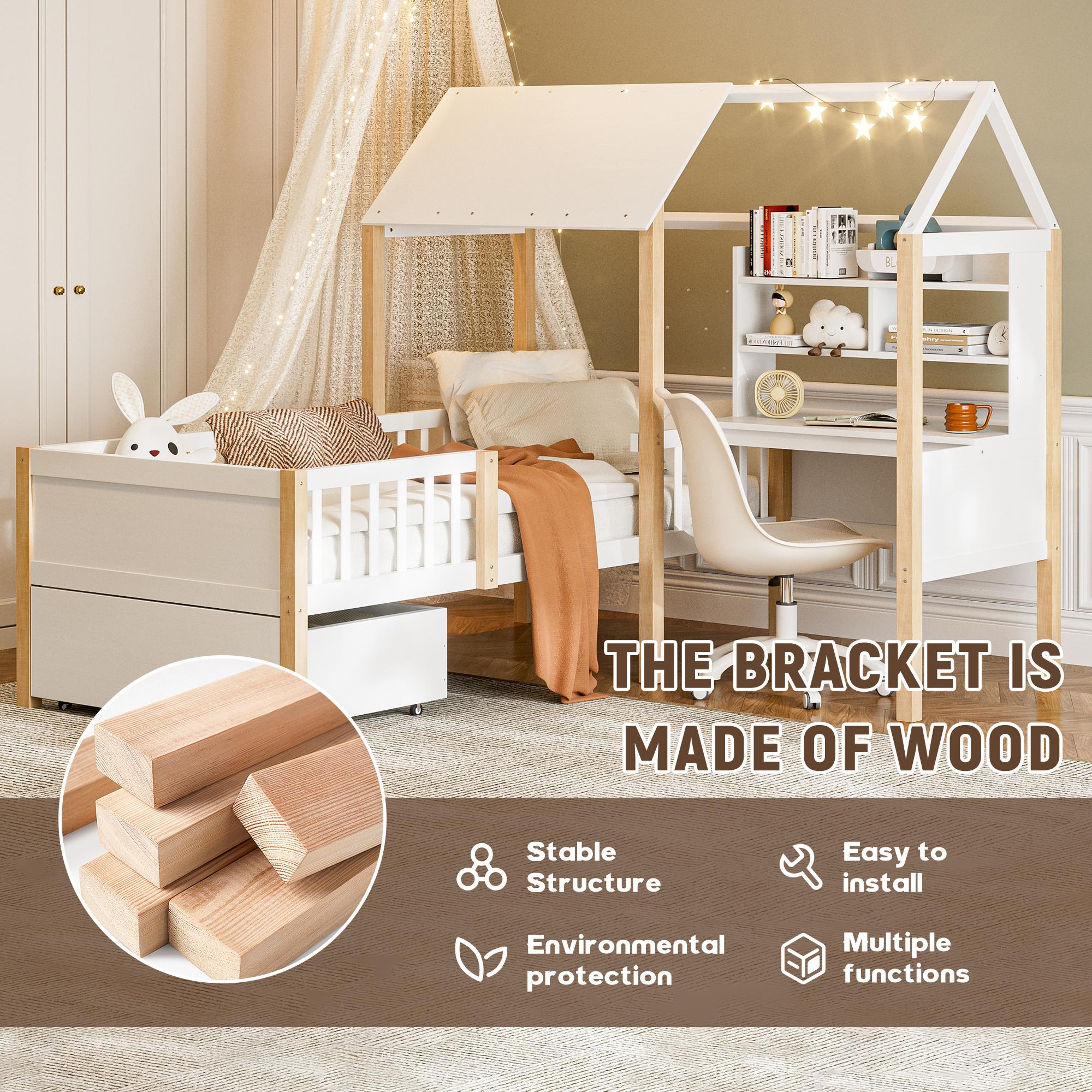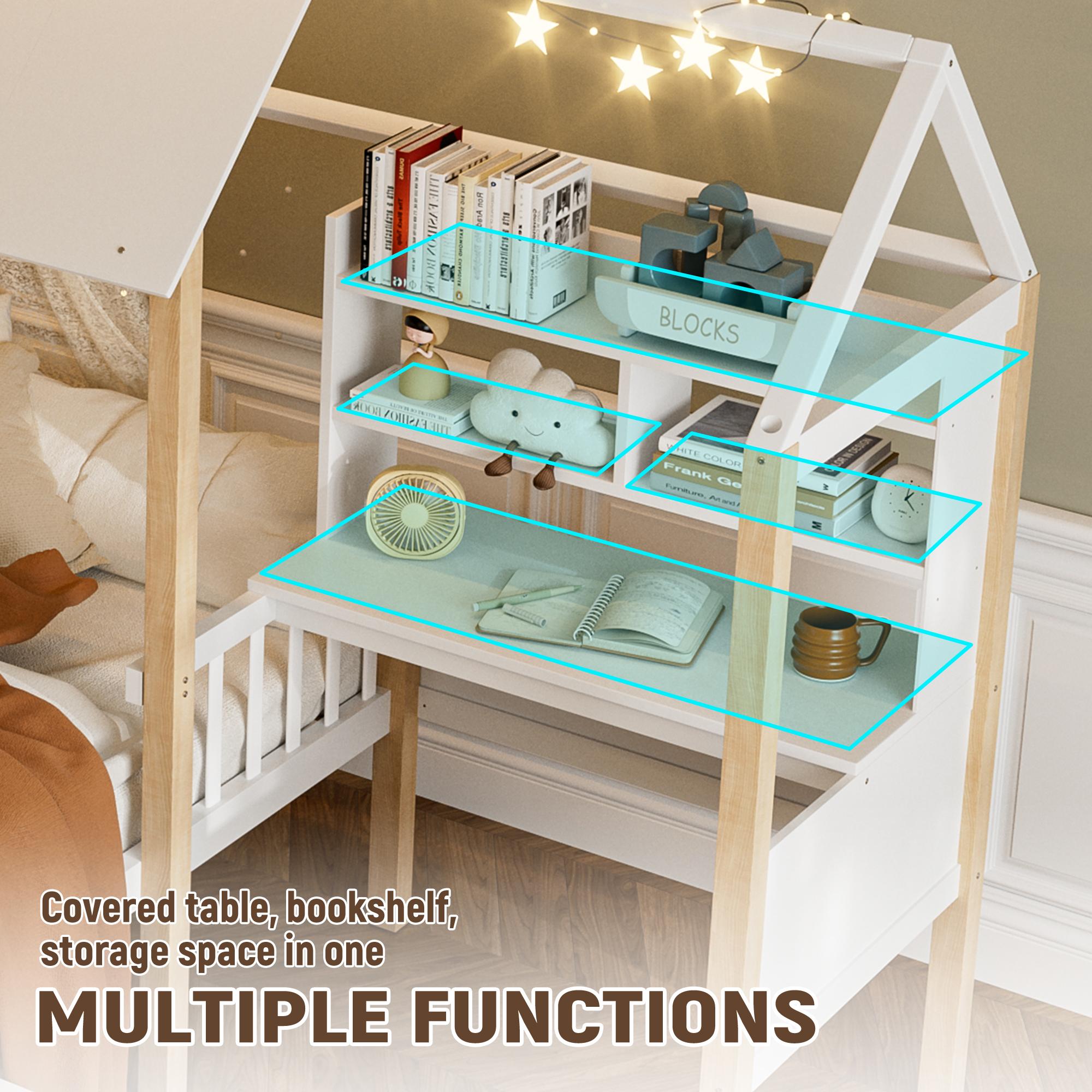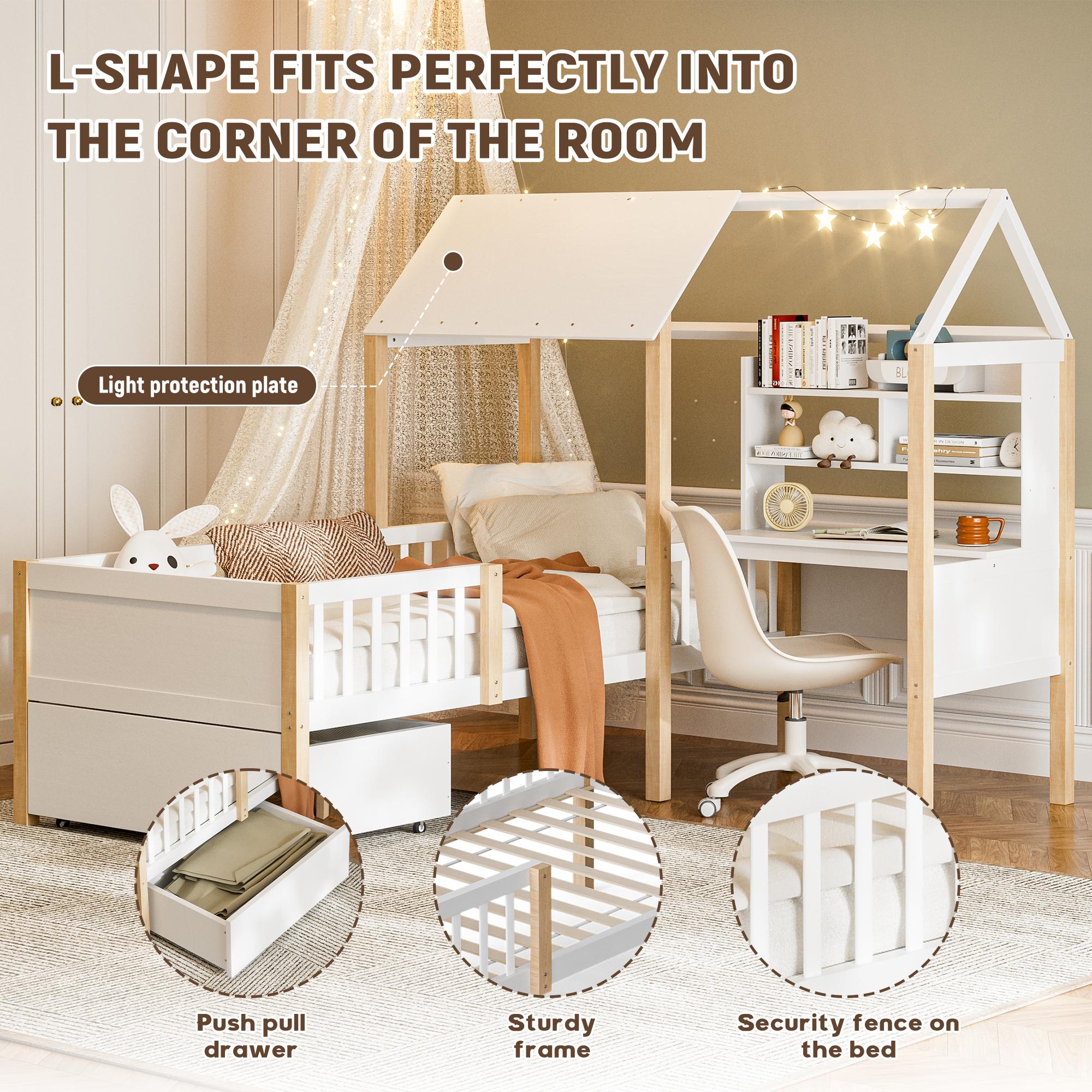 Wit hoogslaper met bureau en lades – Multifunctionele structuur 90x200 cm, ruimtebesparend voor kinder- of volwassenenslaapkamer