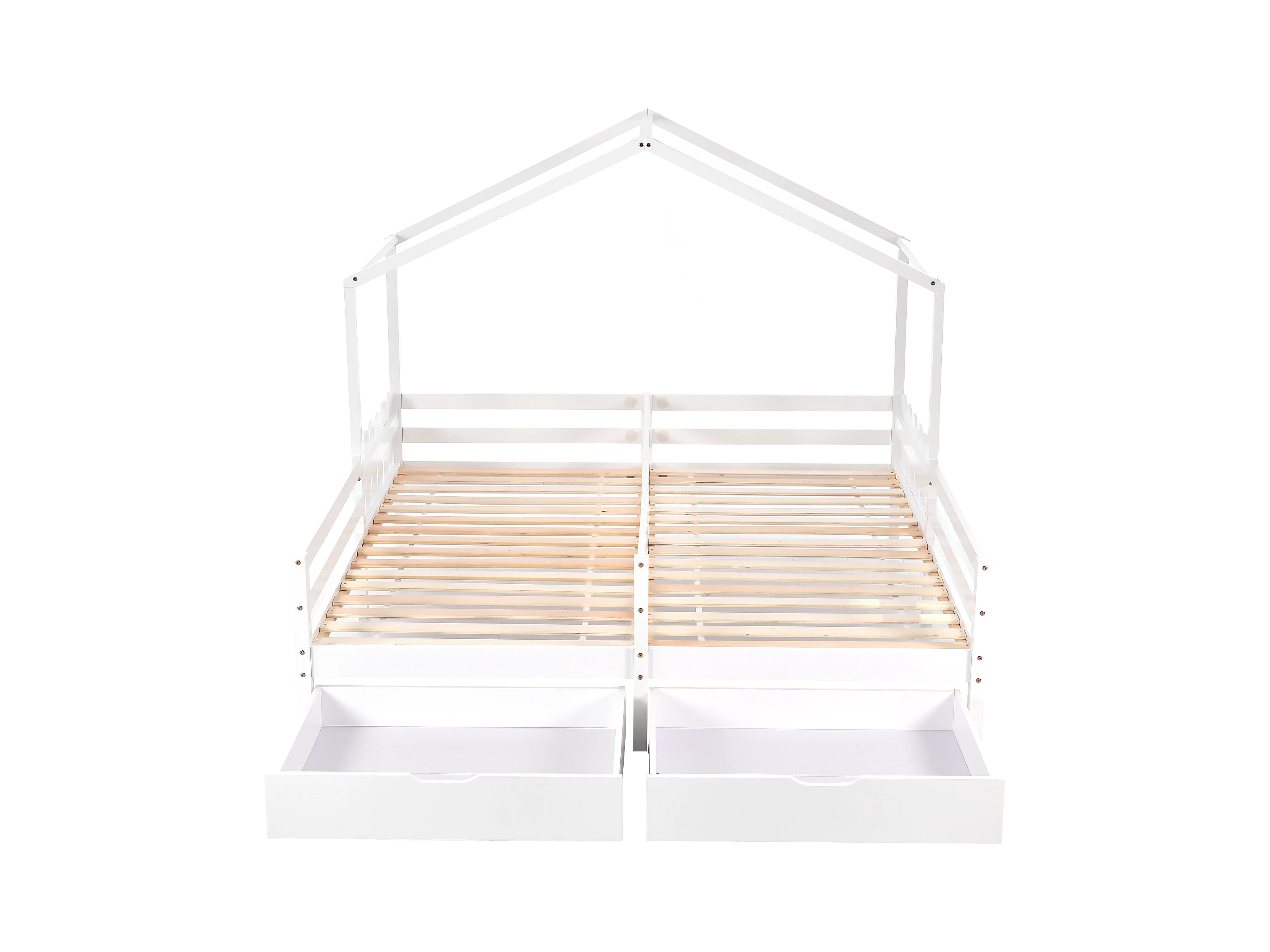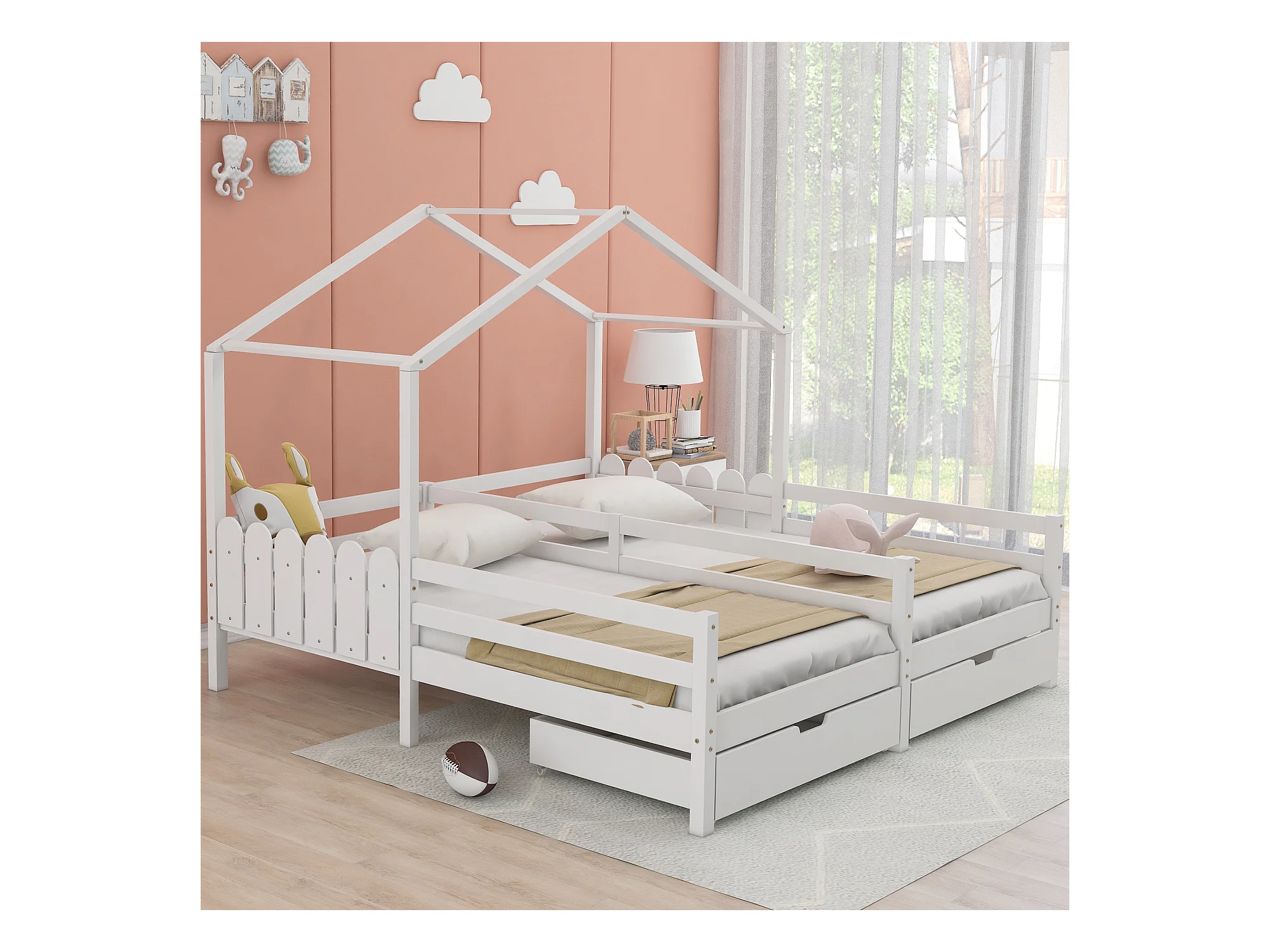 Wit kinderbed 2-persoons 90x200cm met 2 lades, grenen + MDF, zonder matras