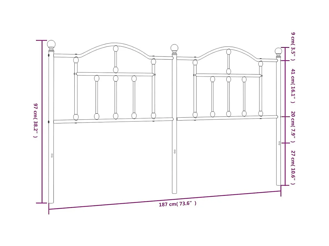 Wit metalen hoofdbord 180 cm