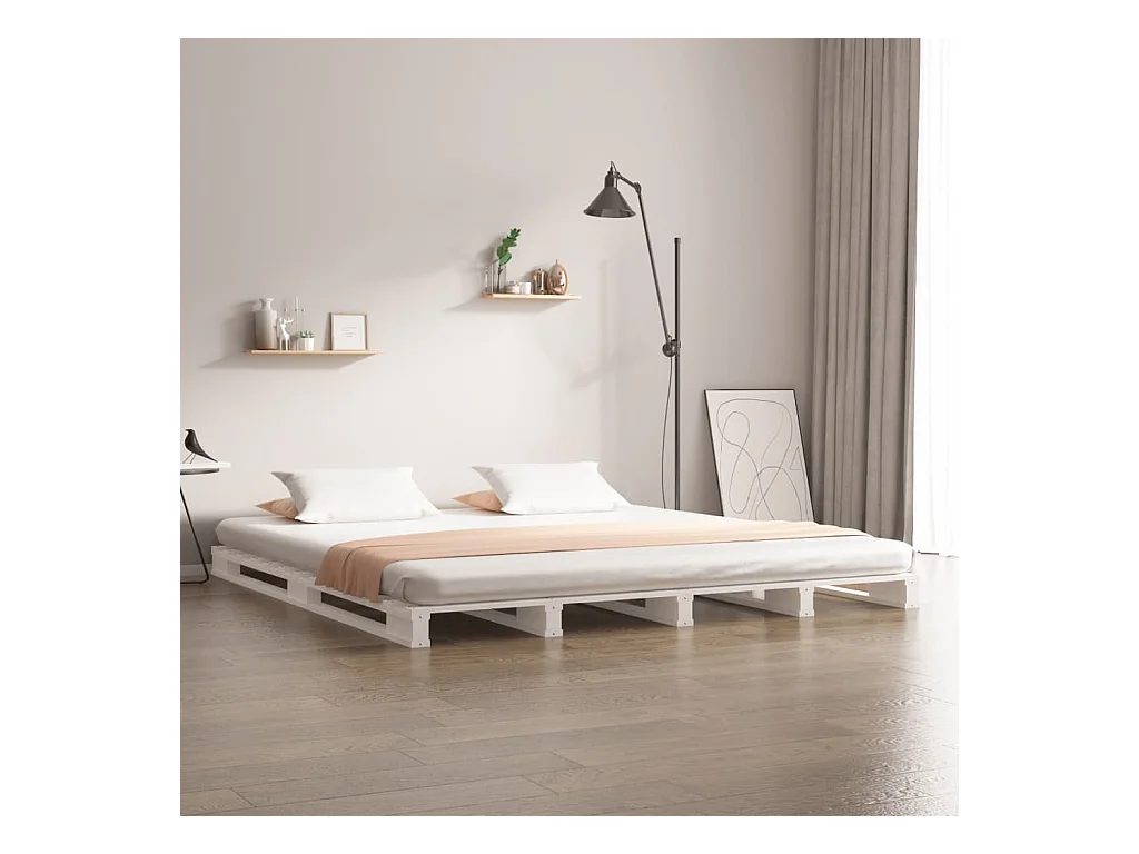 Wit palletbed 135x190 cm Massief grenenhout Tweepersoons