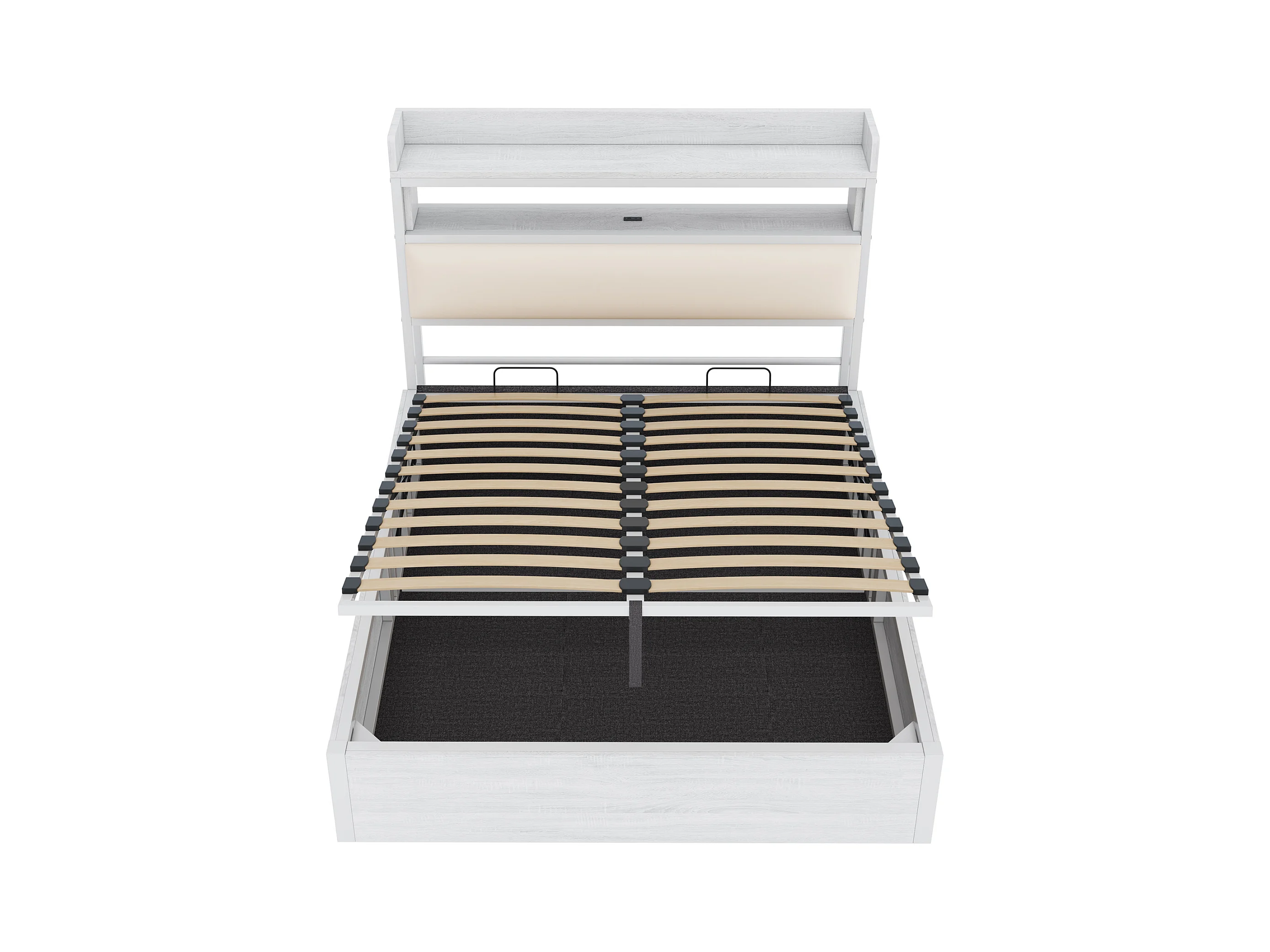 Opbergbed 140x200 met schuin hoofdbord met wit essen Ankellatten