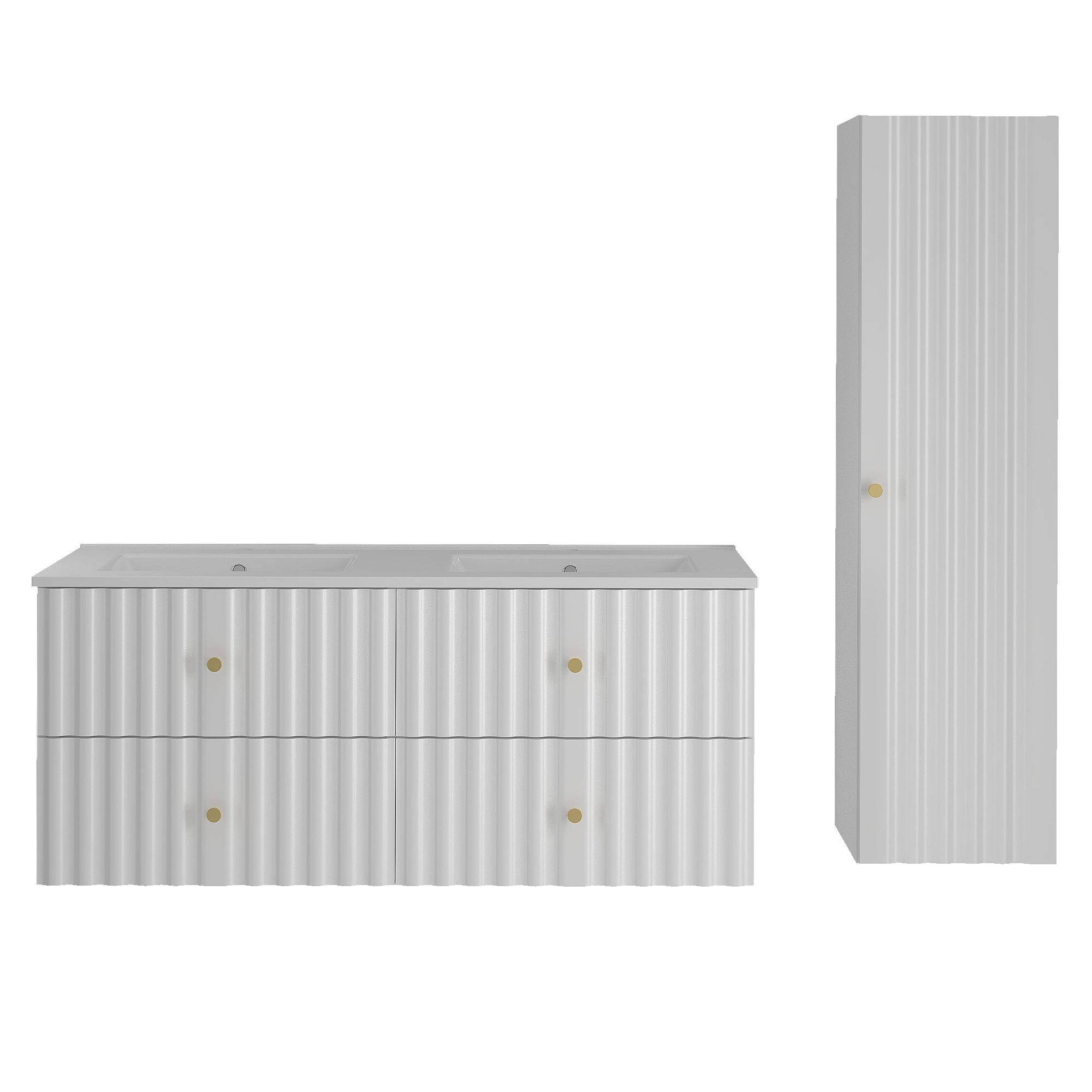 Witte badkamerset 120 cm Kast met wastafel Kolom Geribbelde fronten Arcos