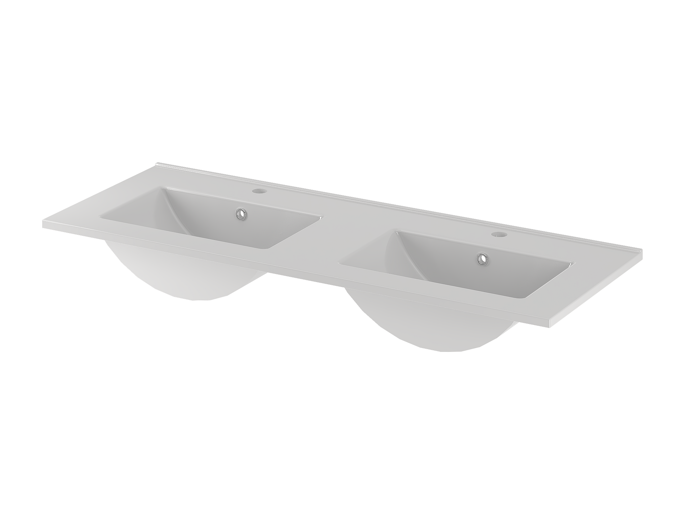 Zwevend wastafelmeubel met dubbel inbouwbekken en kast - Wit - 120 cm - SELITA