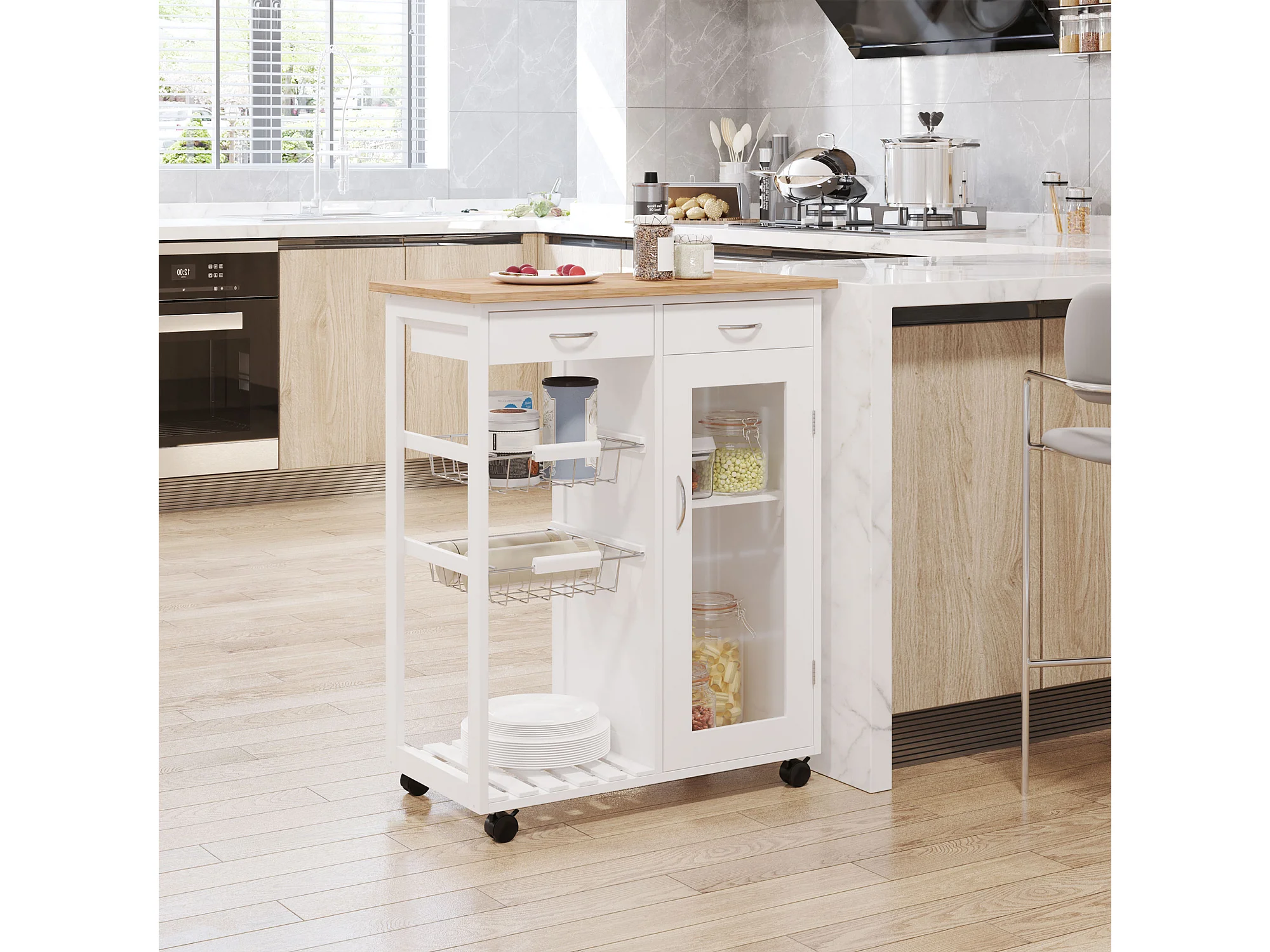SoBuy FSB09-W keukenkast zwenkwielen Keukenwagen Rolkast Drankwagen Magnetronkast