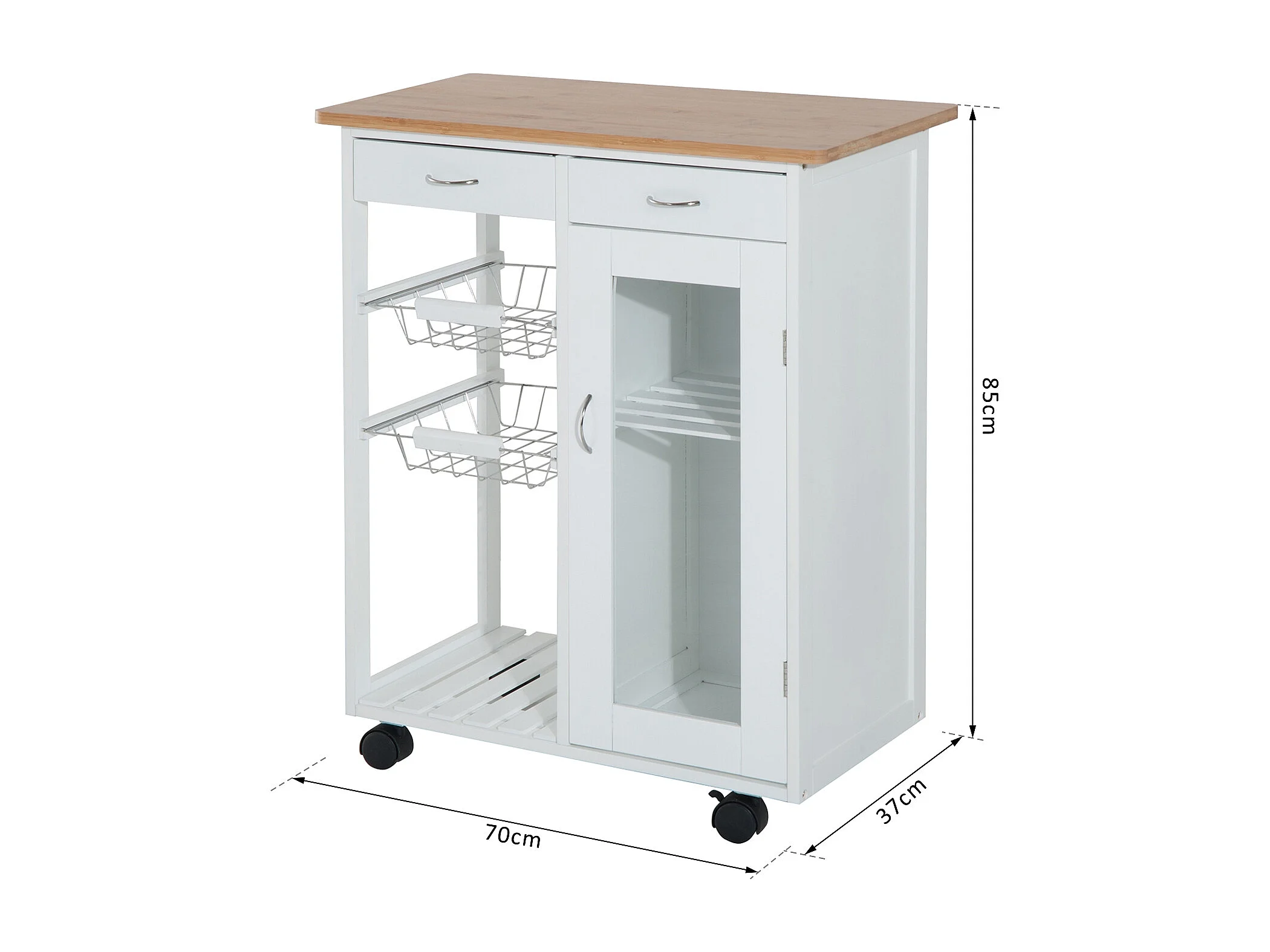 Witte bamboe keukenkar 70x37x85 cm