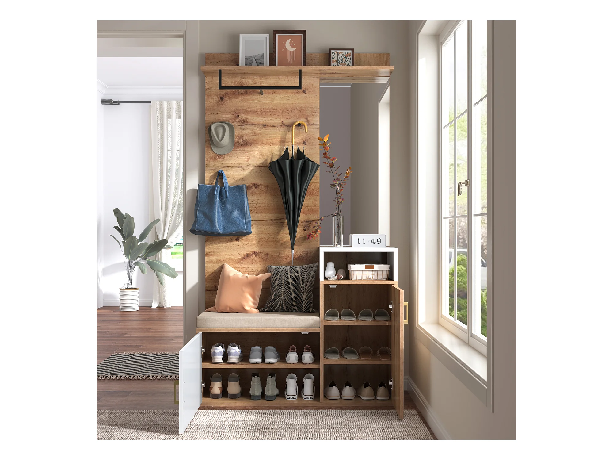Halbank met Spiegel en Schoenenkast - Natuurlijk & Zwart - Ruim en Elegant