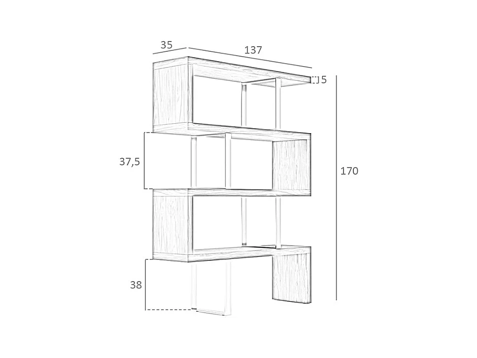 Dsol boekenkast, Kantoorplank, Boekenkast, Bibliotheek, 55x48 h180 cm, Wit en Eiken