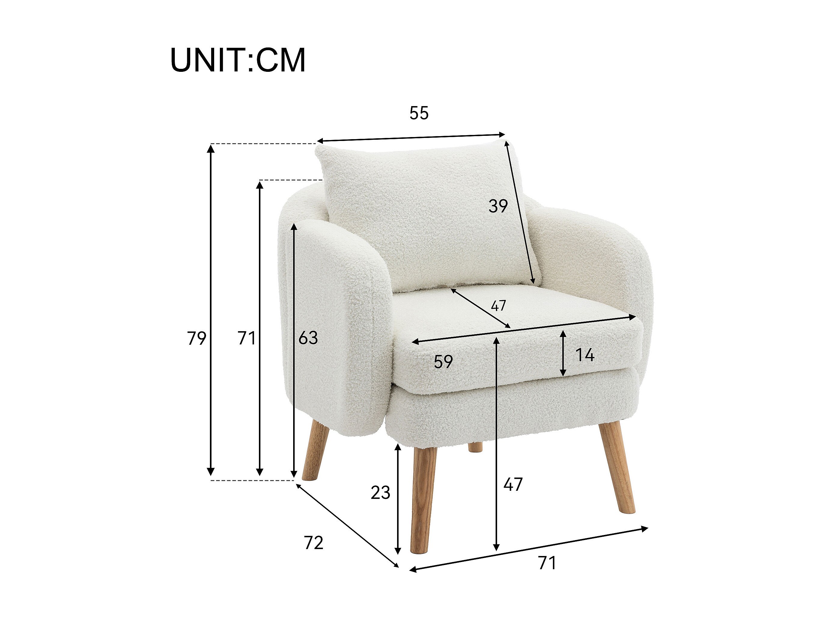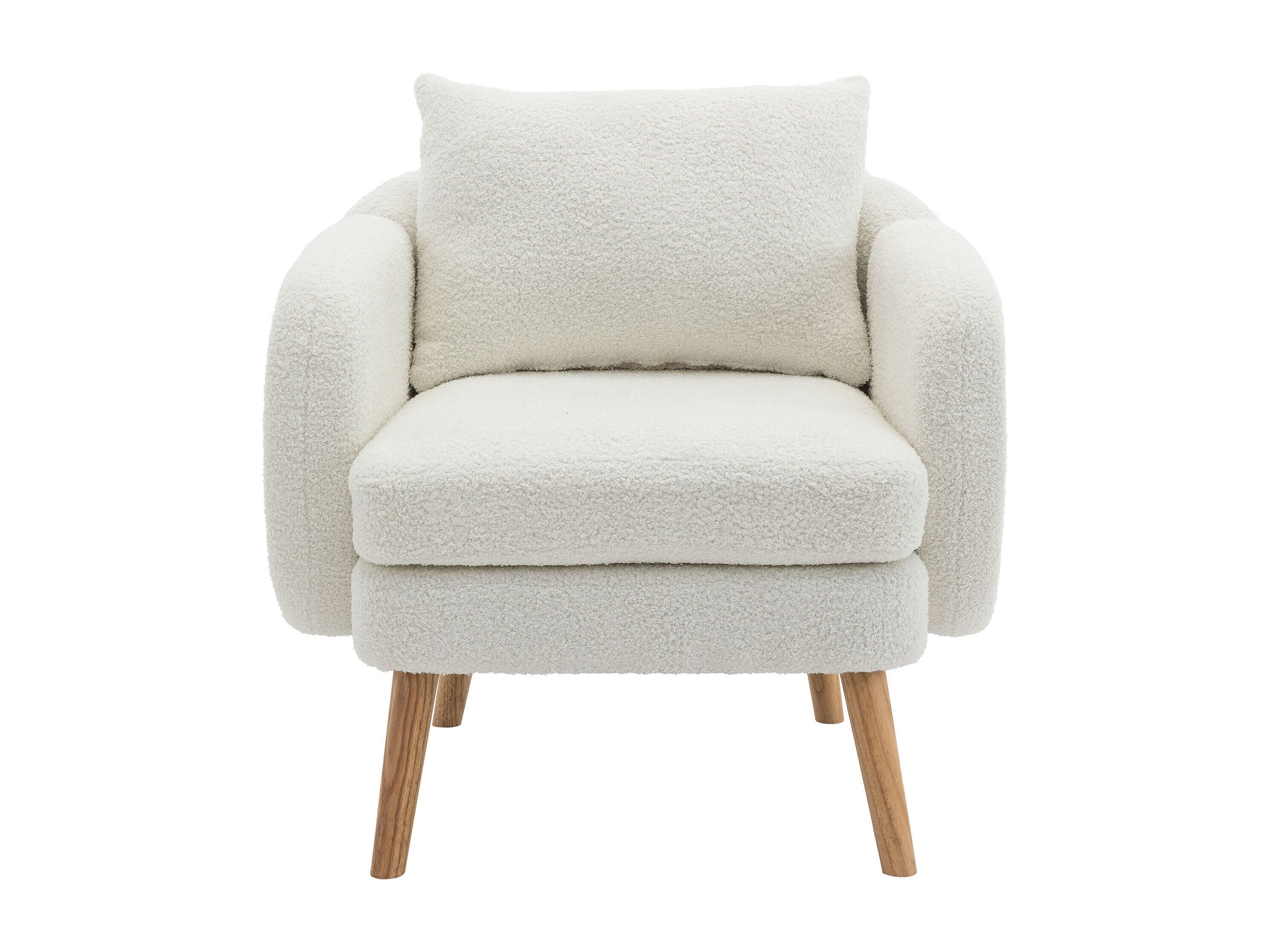 Witte fauteuil - Fauteuil met dikke zitting en armleuningen - poten en kussens van massief hout - teddyfluweel