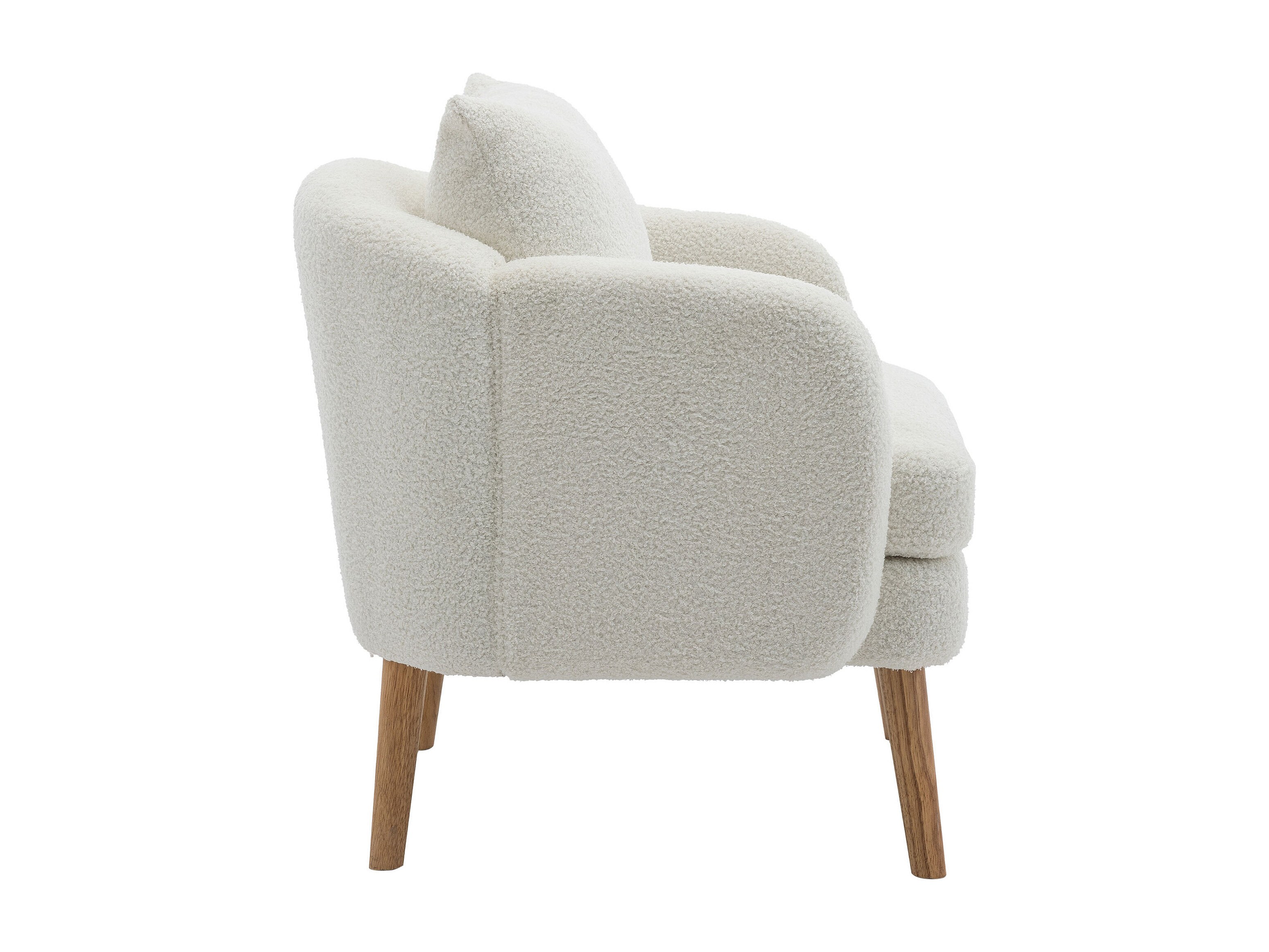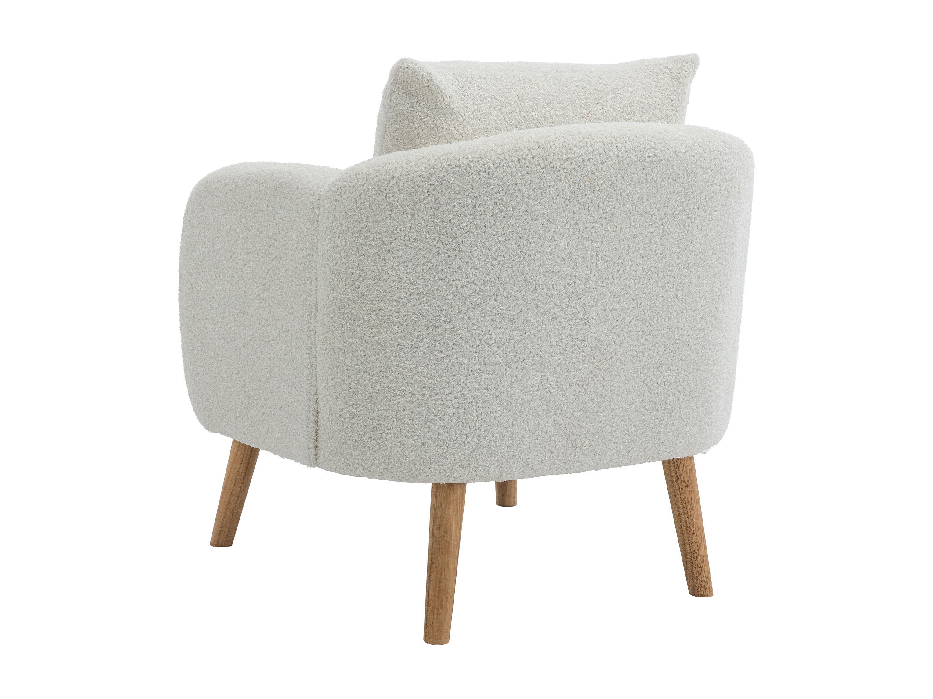 Ivoor stoffen fauteuil met bouclé-effect en rubberhouten poten - FAIZA