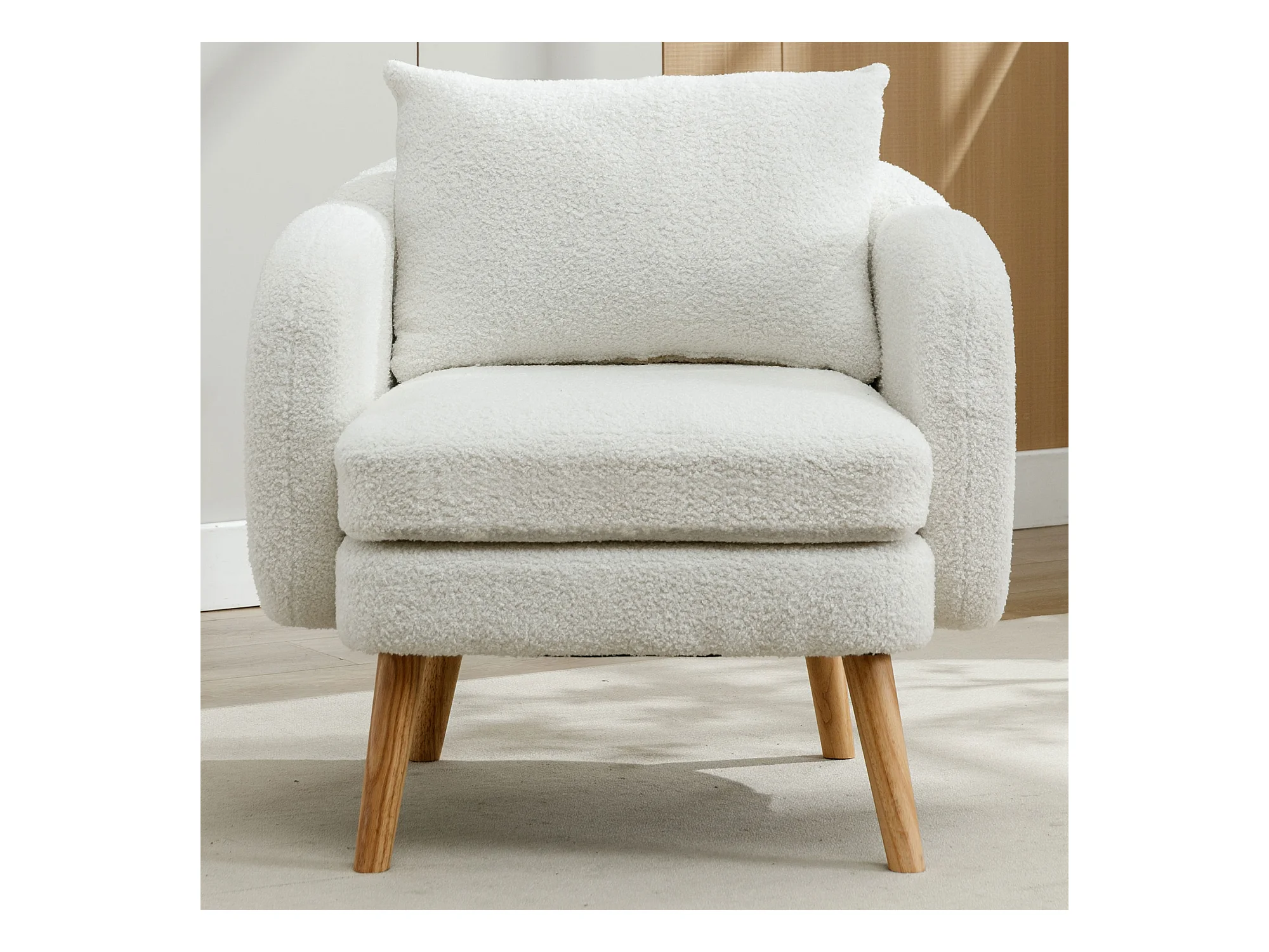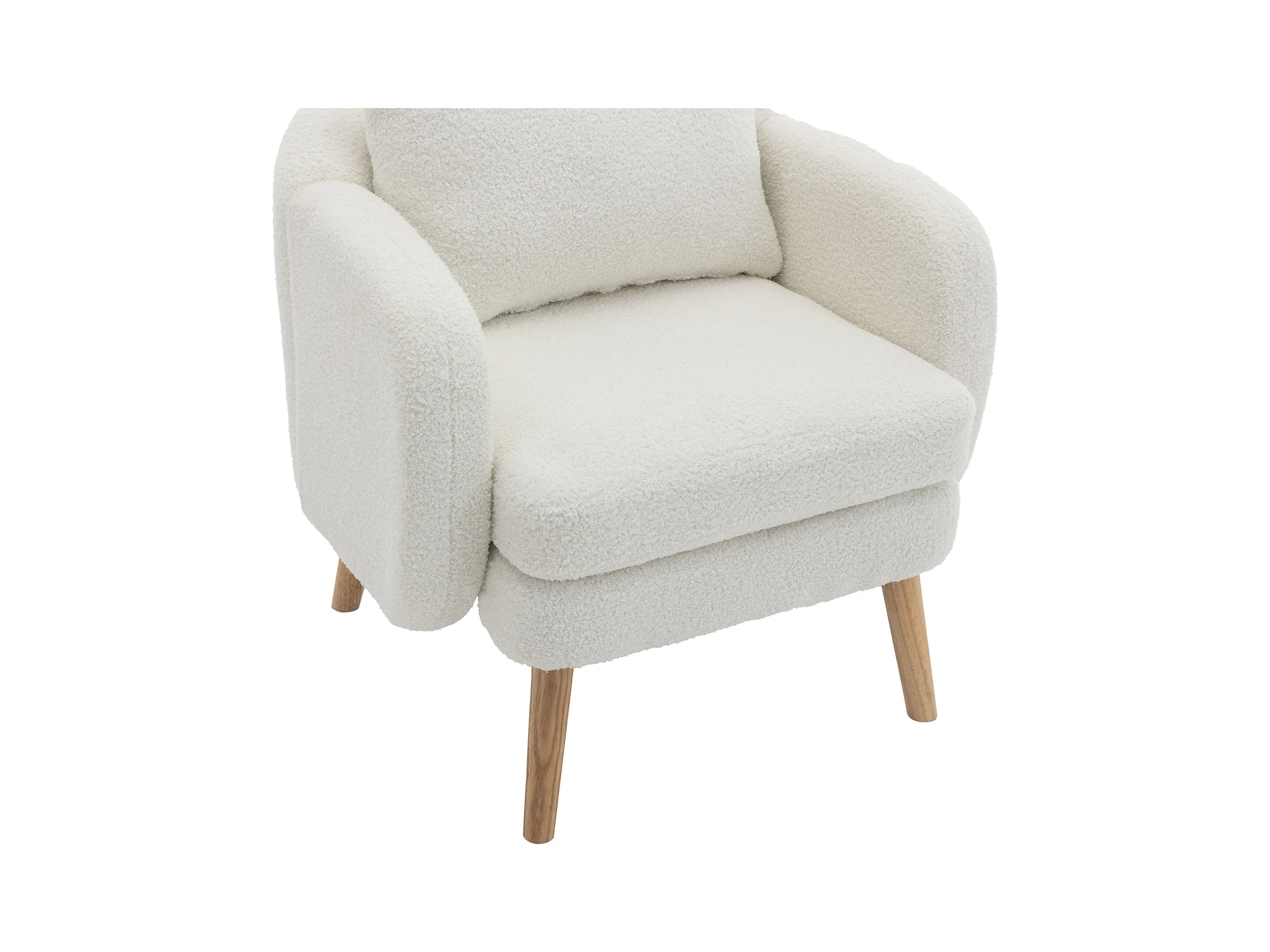 Witte fauteuil met kussens, teddy fluweel, houten poten 71x72x71cm