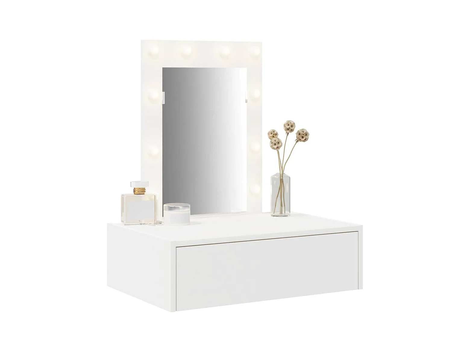 Witte kaptafel met LED-spiegel, 4 lades, verstelbare verlichting, elegant design, MDF (80x40x101 cm)
