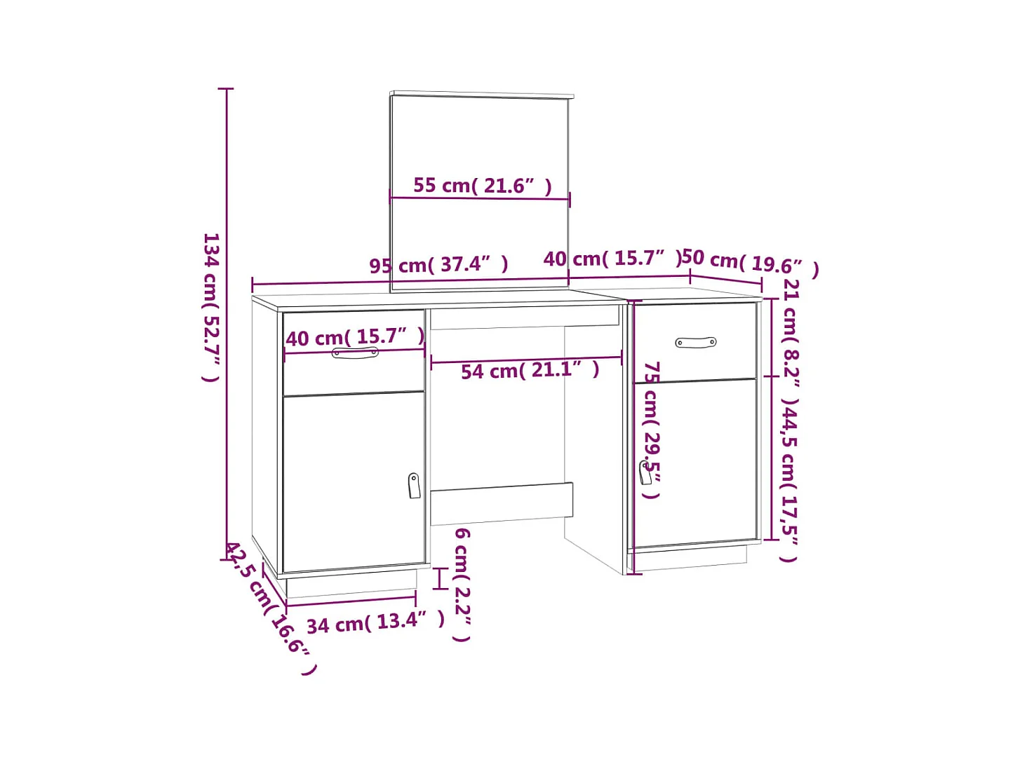 Witte kaptafel 95x50x134 cm massief grenenhout