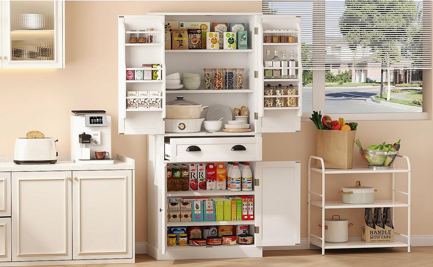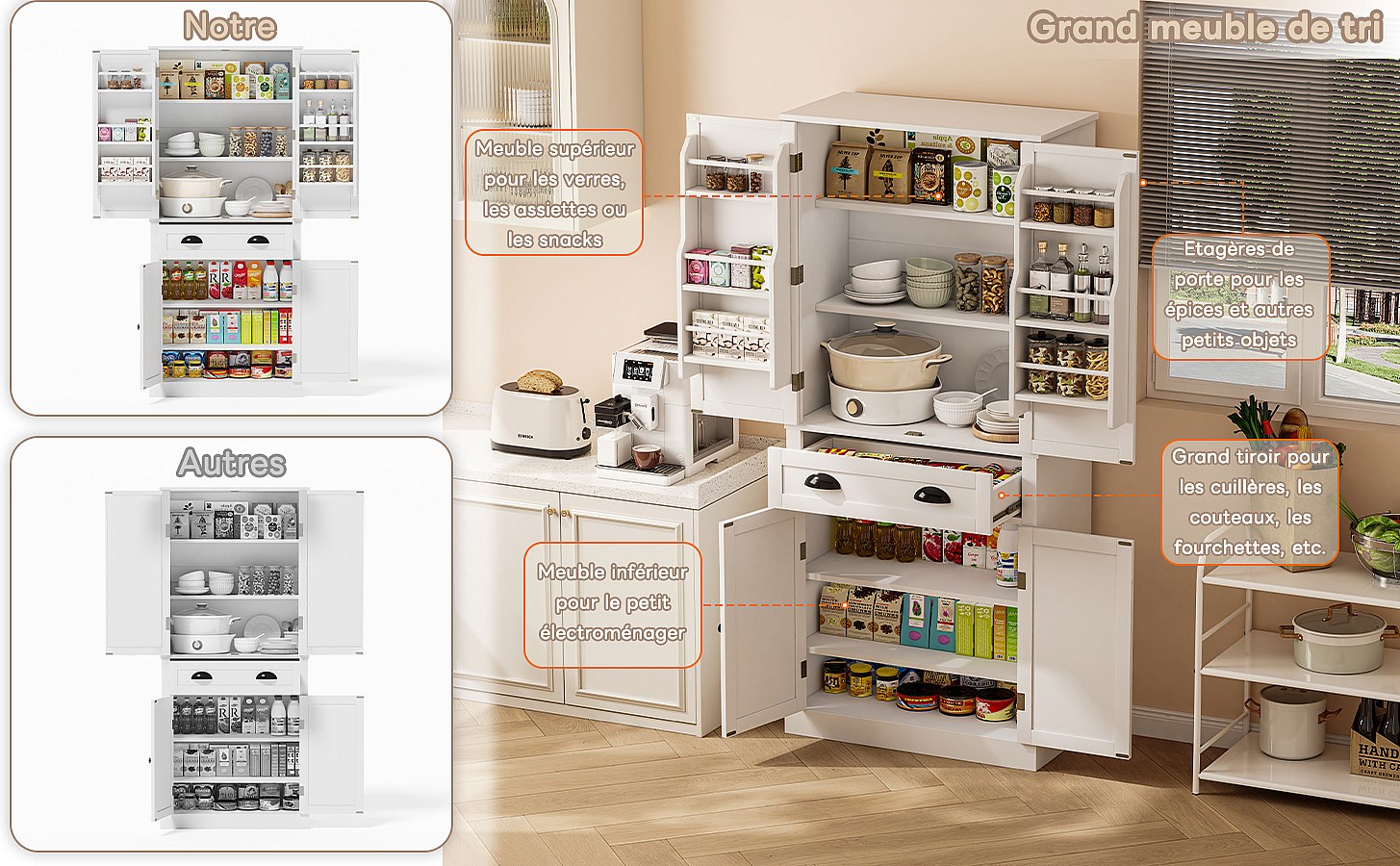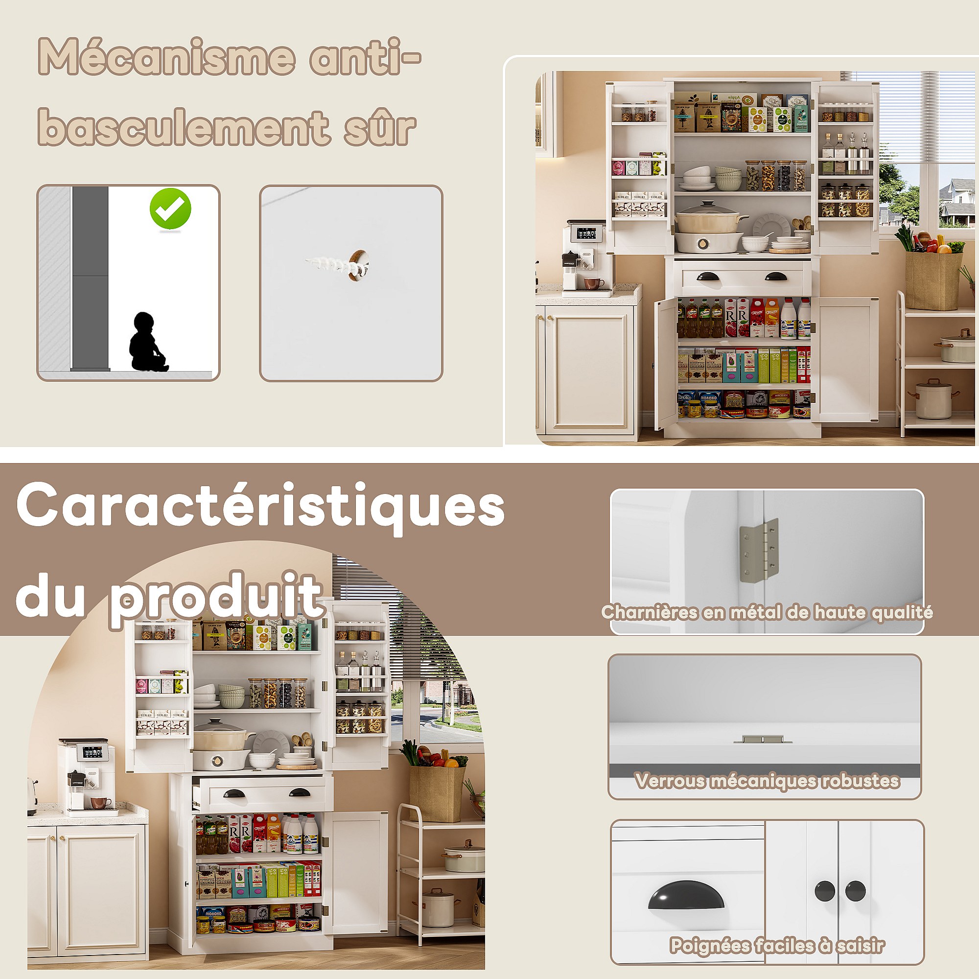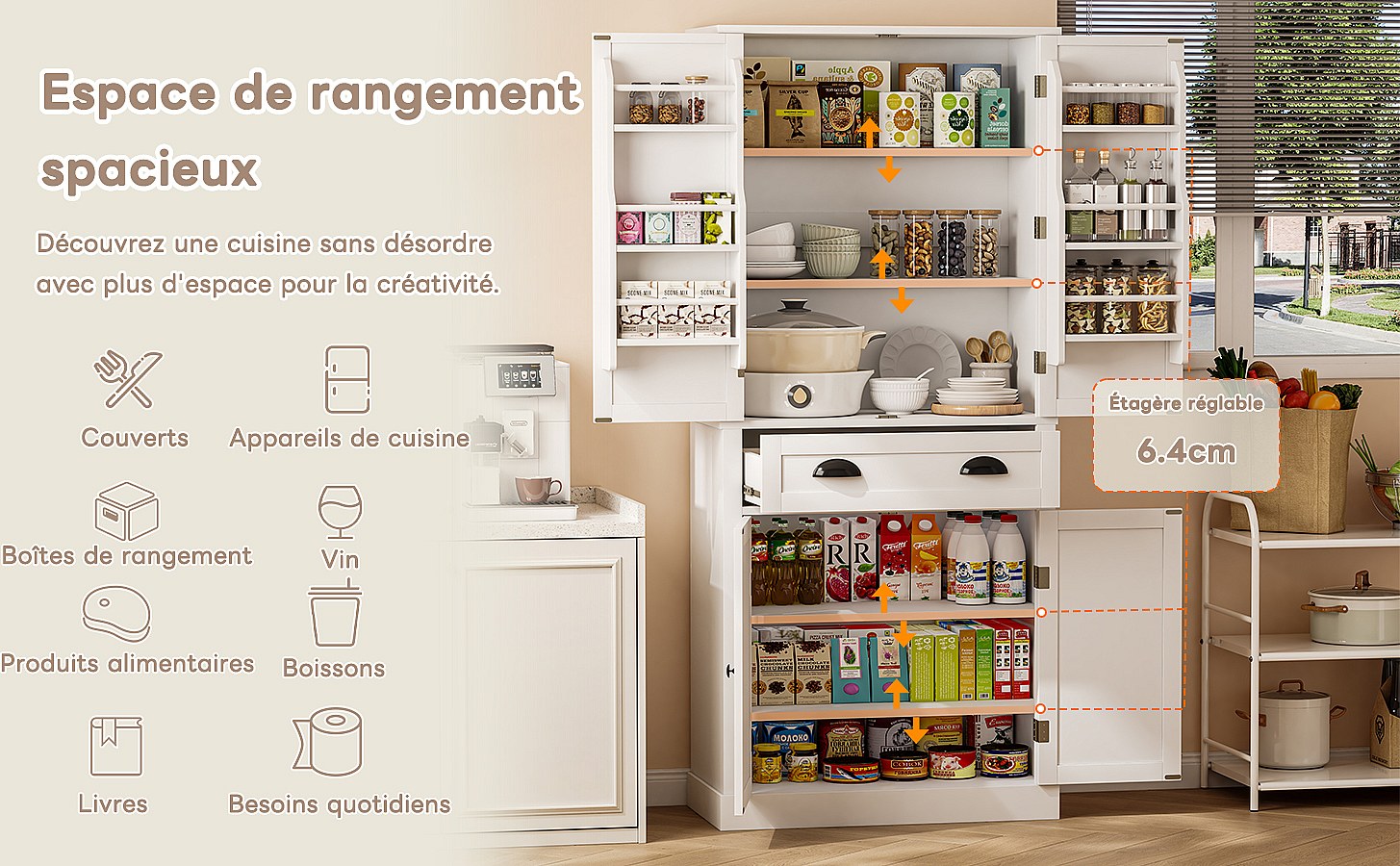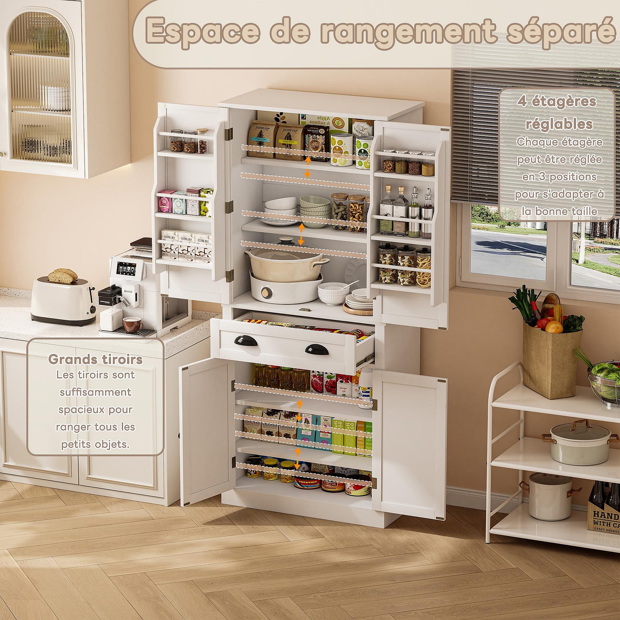 Witte opbergkast, 4 deuren en 1 lade, 6 compartimenten, 4 verstelbare planken, grote inhoud, ideaal voor keuken, eetkamer, woonkamer