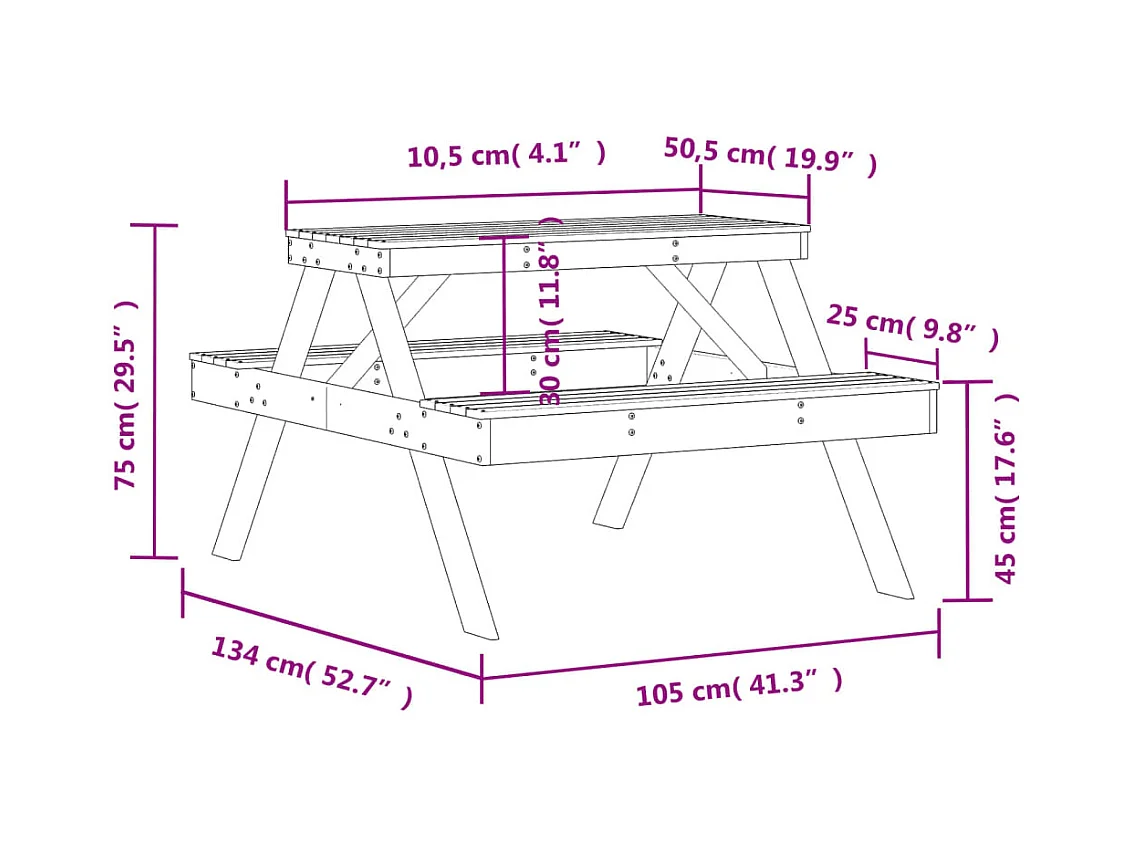 Witte picknicktafel 105x134x75 cm massief grenenhout