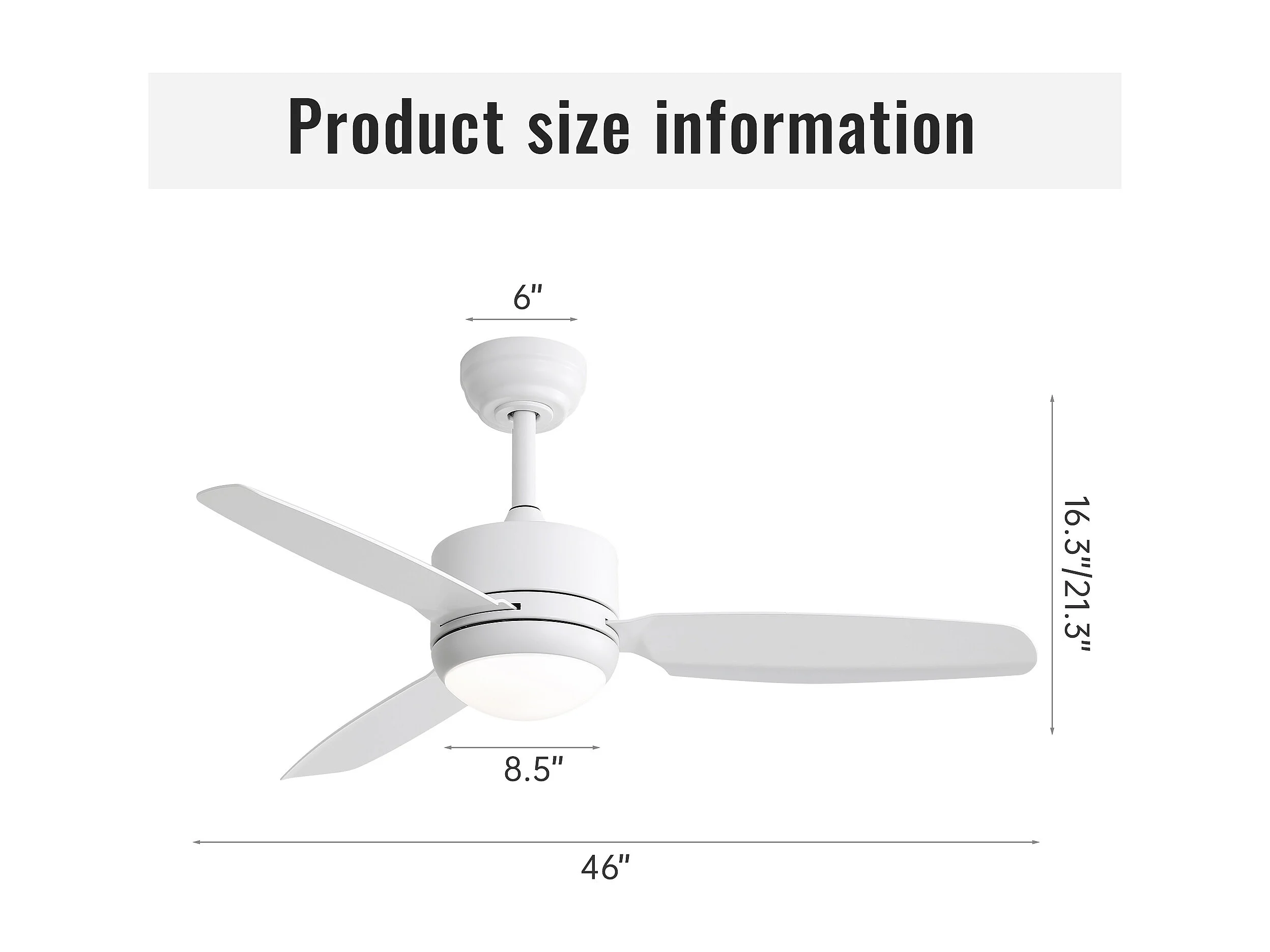 Plafondventilator 116,8 cm, 3 ABS-bladen met LED, 6 snelheden, omkeerbare DC-motor, wit