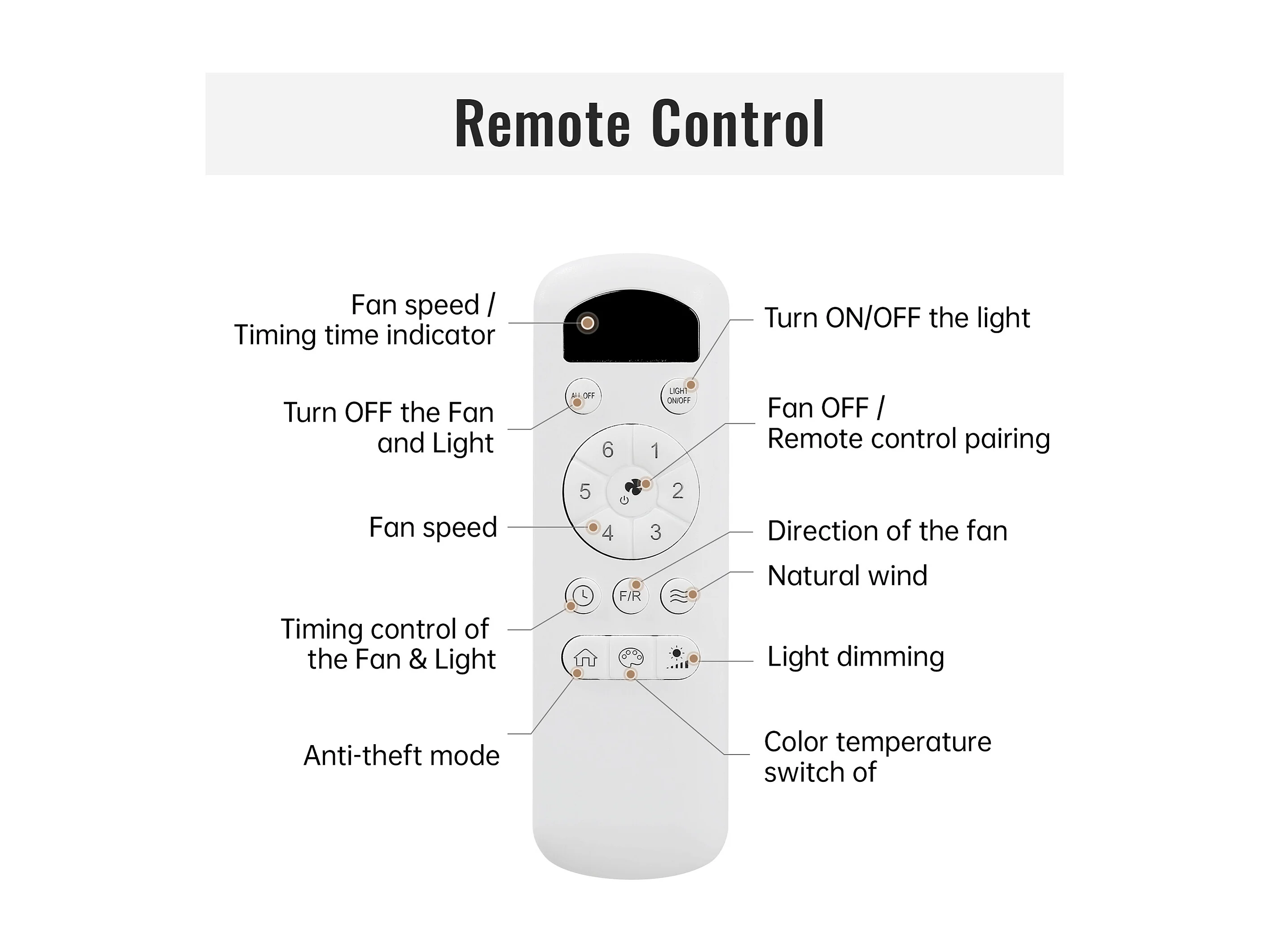 96,5 cm plafondventilator met 3 bladen, afstandsbediening, 6 snelheden en instelbare timer, omkeerbare DC-motor, wit