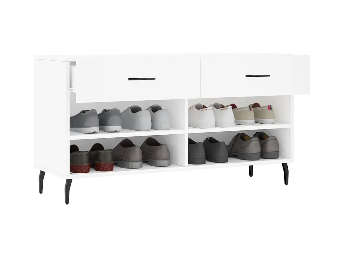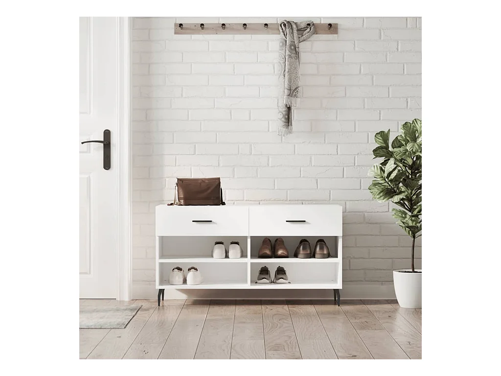 Schoenenbank wit hoogglans 102x35x55 cm bewerkt hout