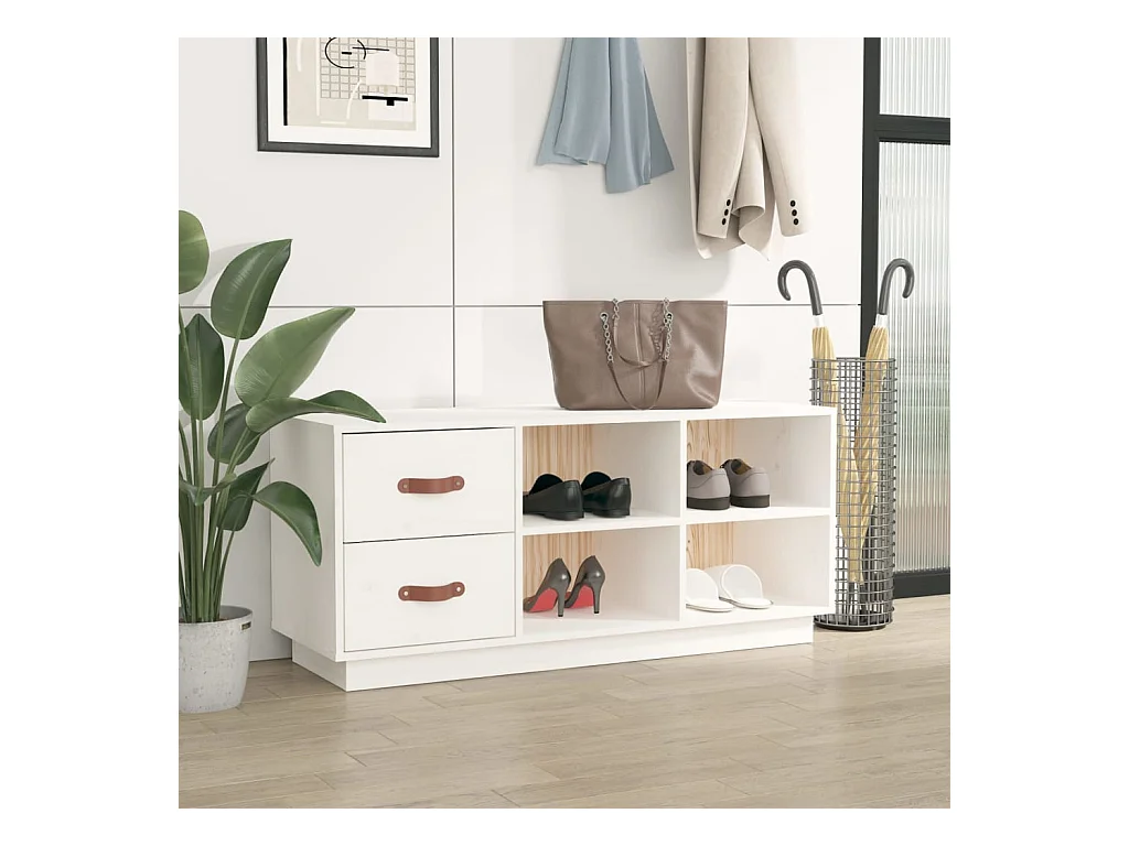 Witte schoenenbank 100x34x45 cm Massief grenenhout