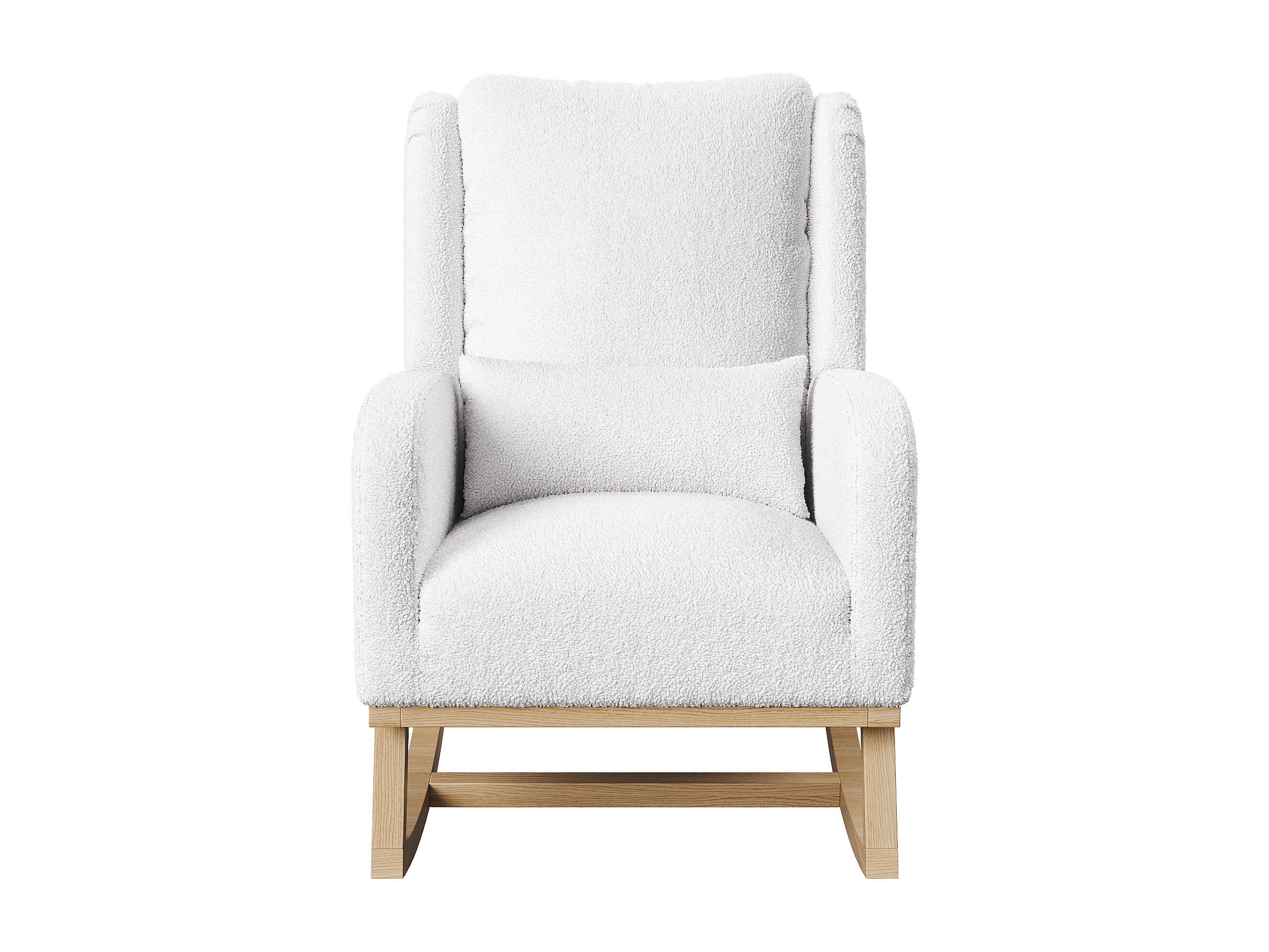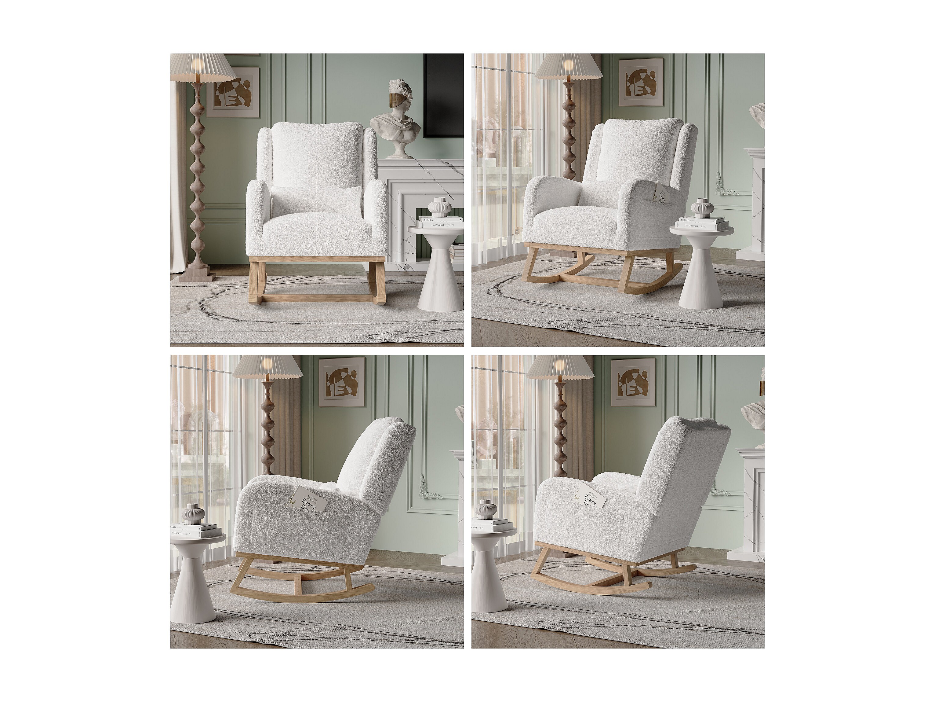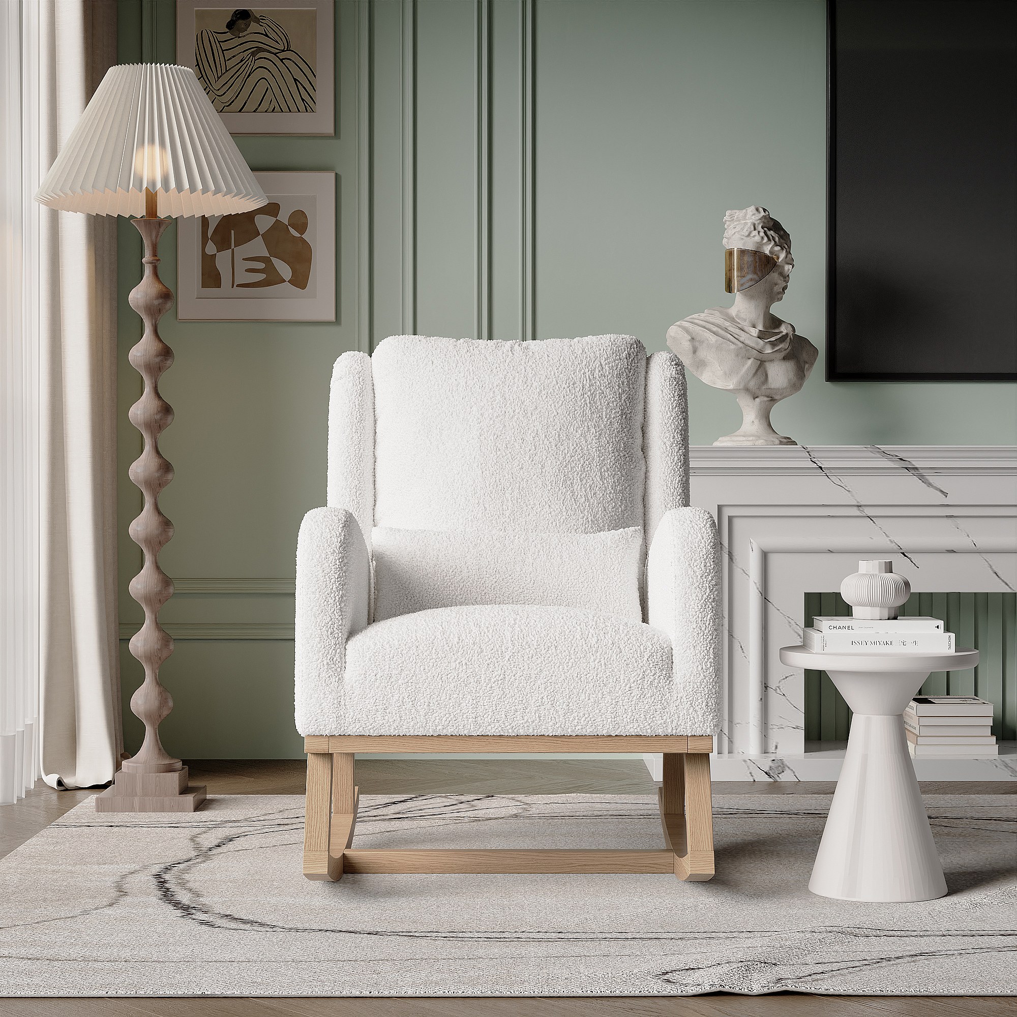 Witte schommelstoel, stoffen schommelstoel met hoge rugleuning, zijvak en lendenkussen, schommelstoel voor binnen en buiten