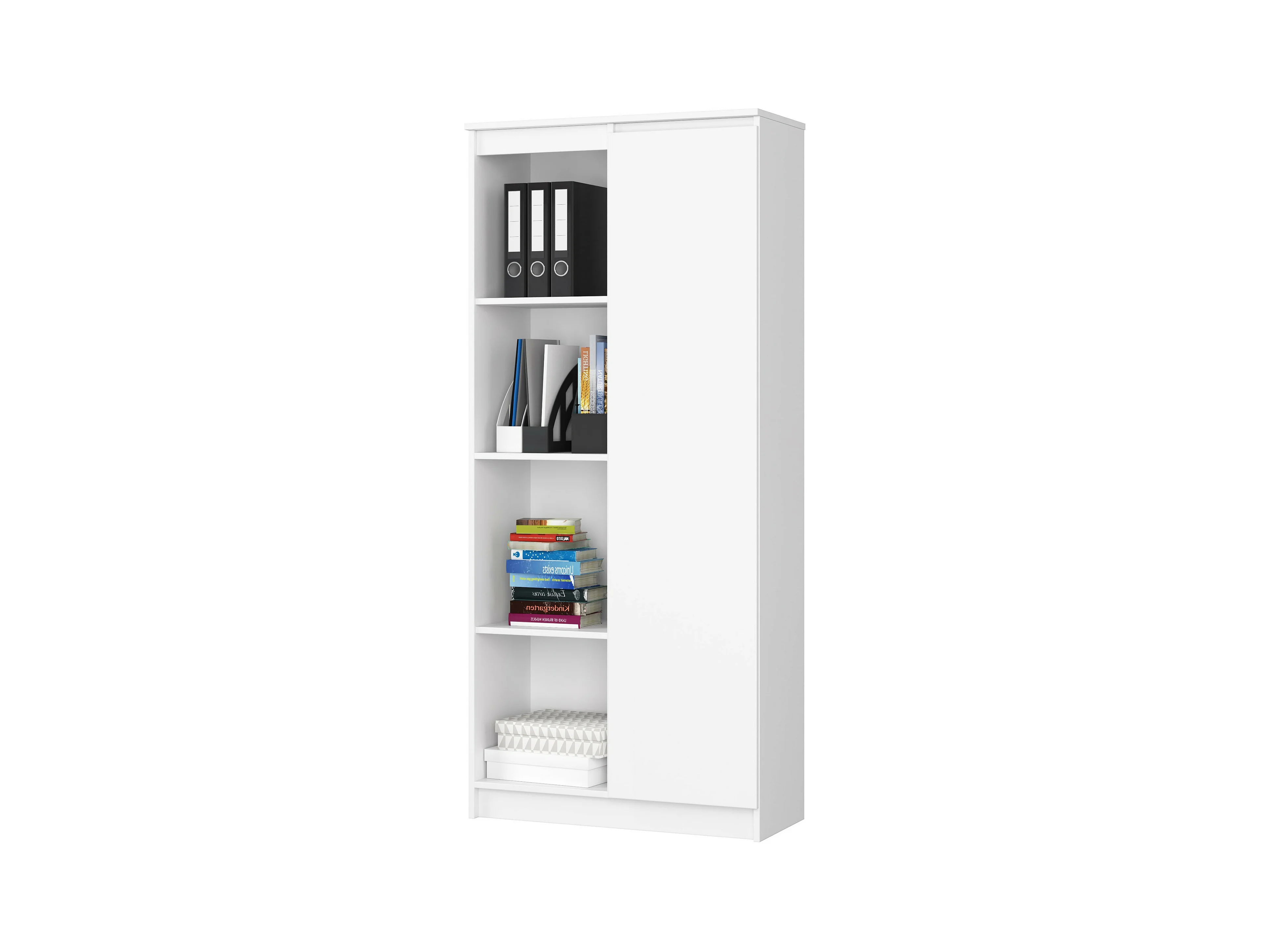 Witte Staande Boekenkast R80 1D 8P - Zelfmontage, 80x180x35 cm, ABS-randafwerking, Mat Front, 1 Deur, 8 Planken, Laminaat Plaat, Modern en Functioneel Design