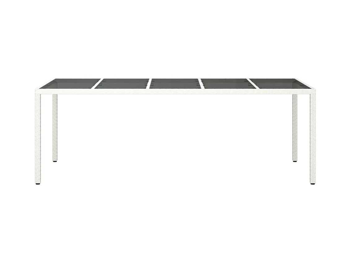 Witte tuintafel 250x100x75 cm gevlochten hars gehard glas