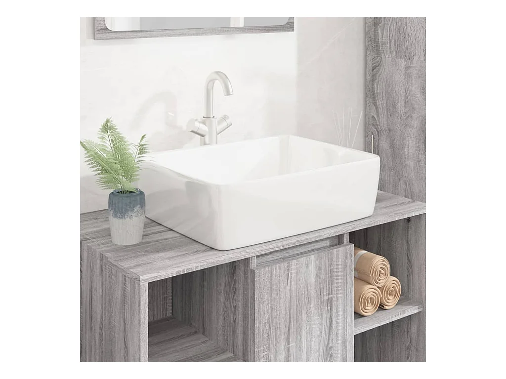 NETTLIFE badkamerwastafel, vierkante keramische opzetwastafel met lotuseffect