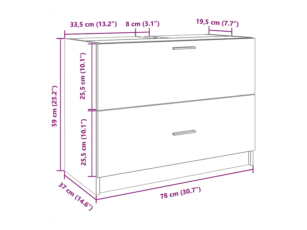 Witte wastafelkast 78x37x59 cm bewerkt hout