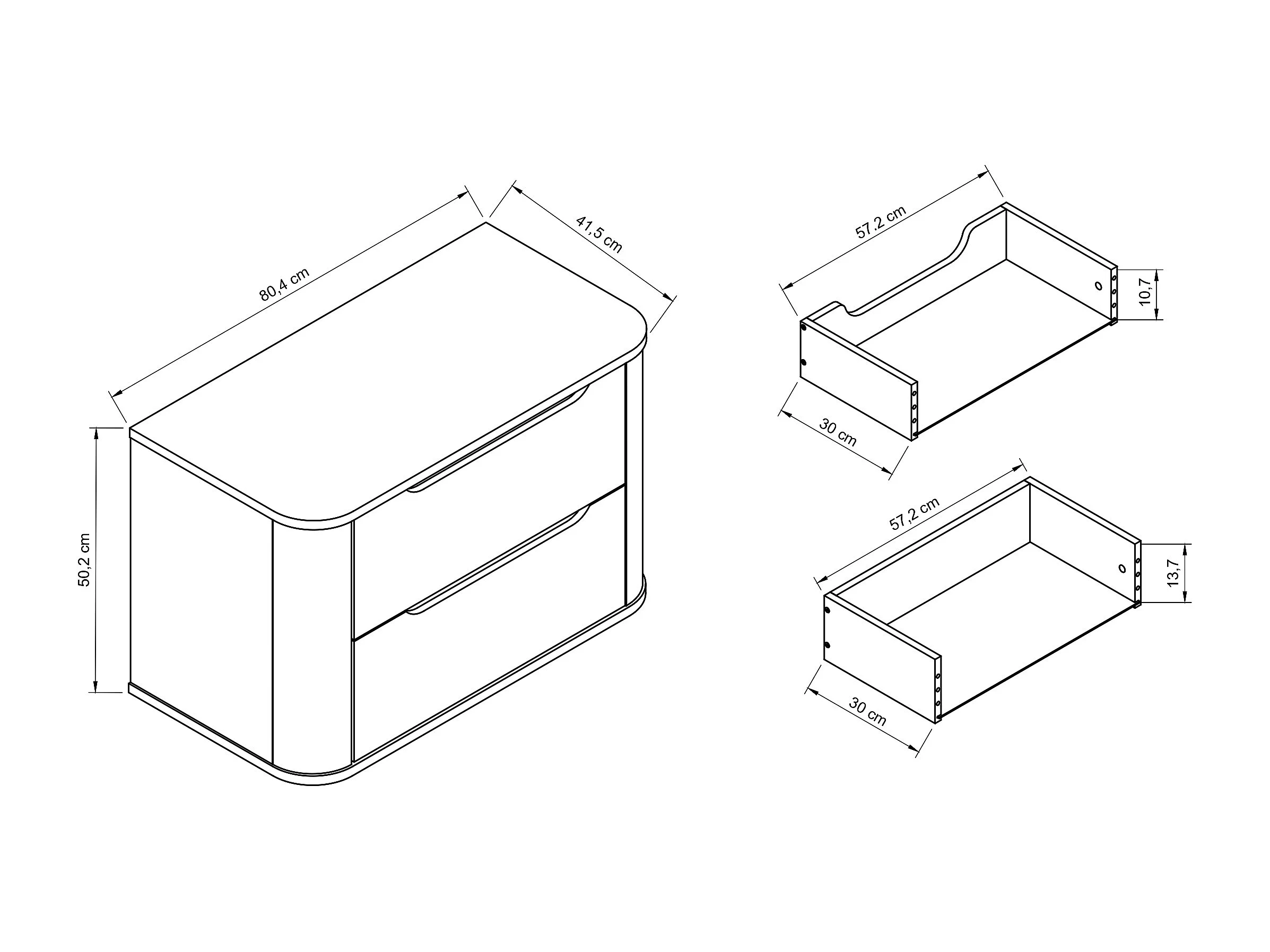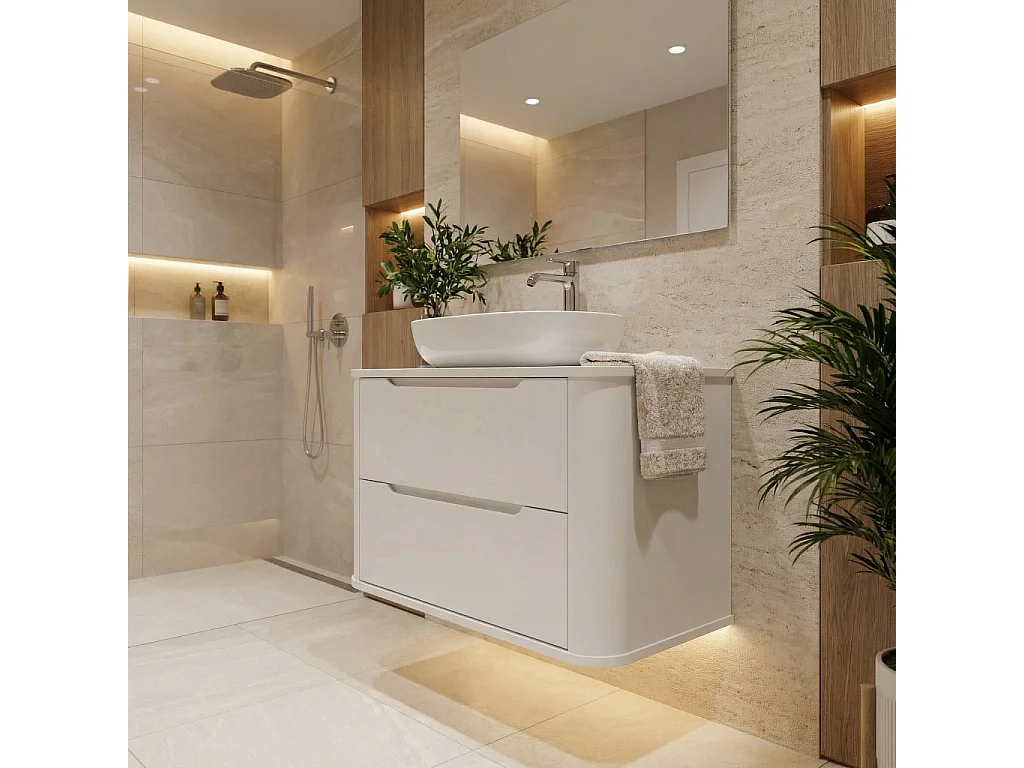 Witte wastafelkast met blad 80 cm Afgeronde zijkanten en blad