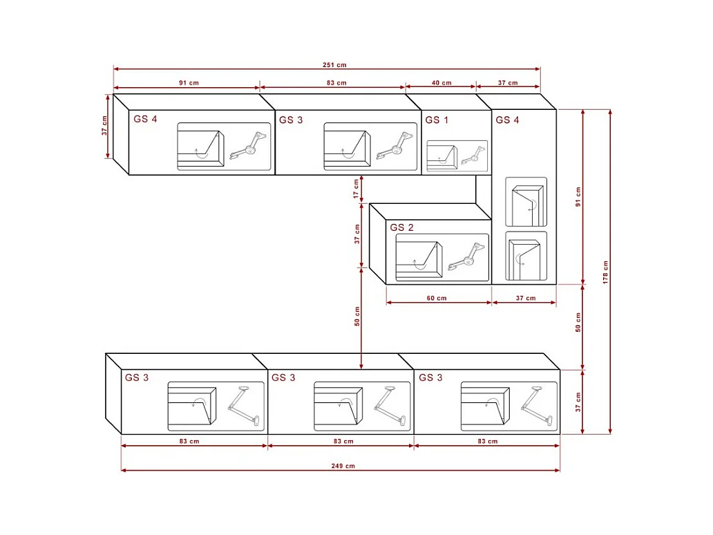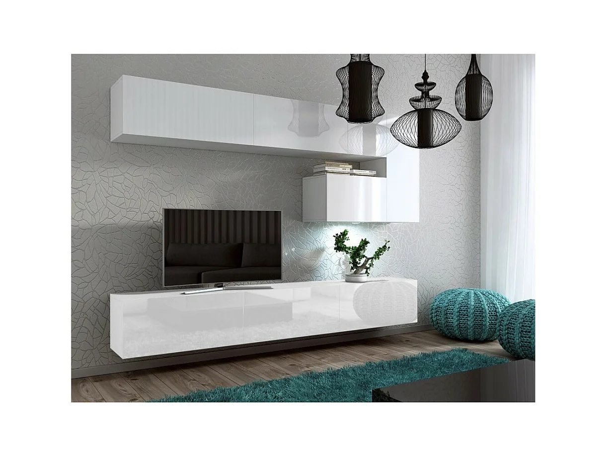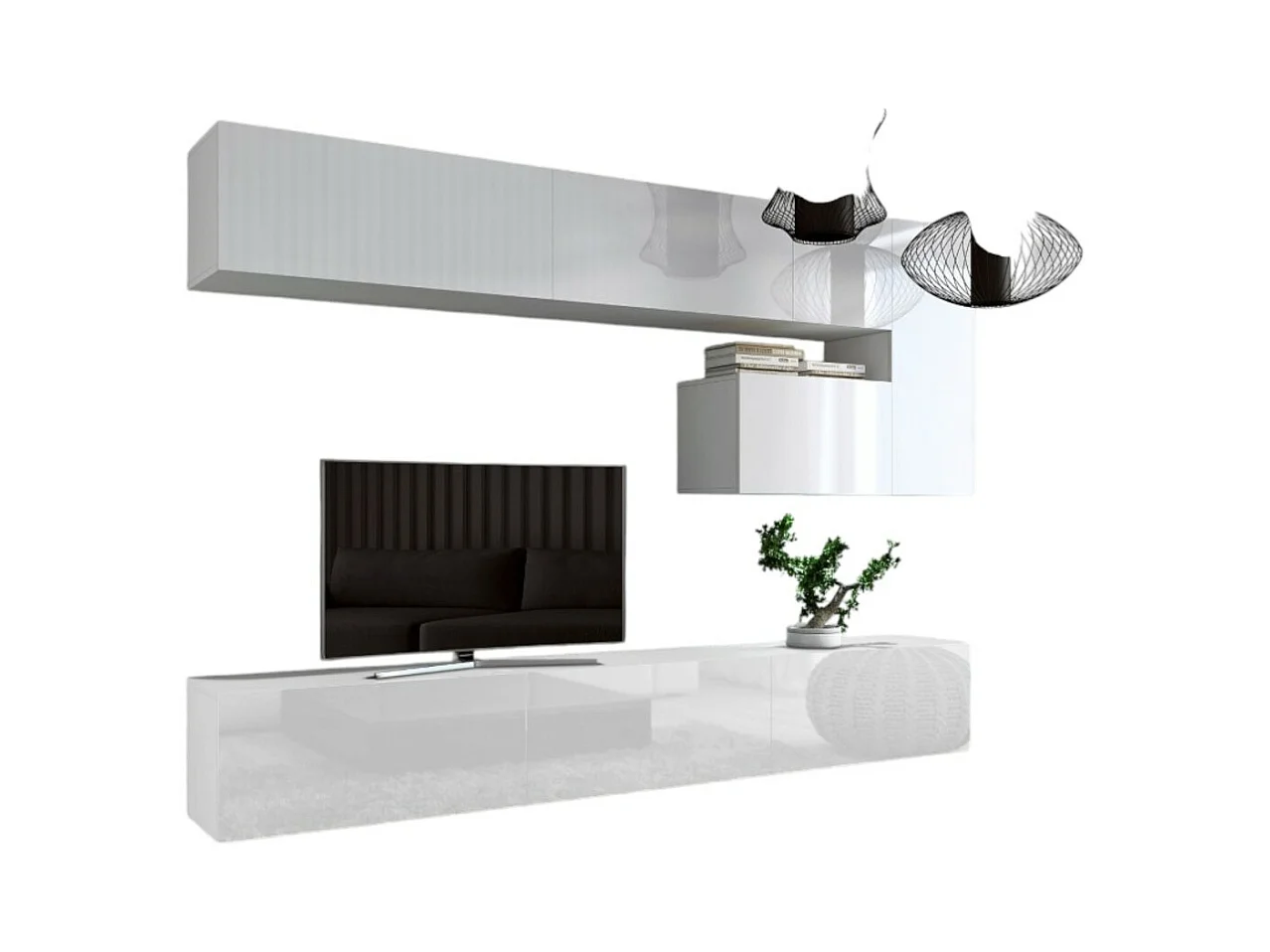 Witte zwevende woonkamer meubelset uit de CEPTO XV collectie. 249cm, 8 meubelstukken, ledverlichting.