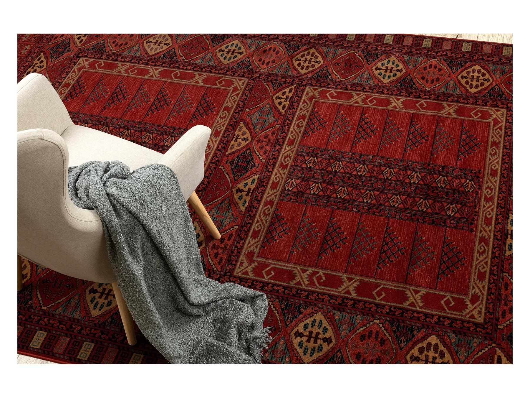 Wollen tapijt KASHQAI 4349 500 oosters, kader rode kleur 67x130 cm