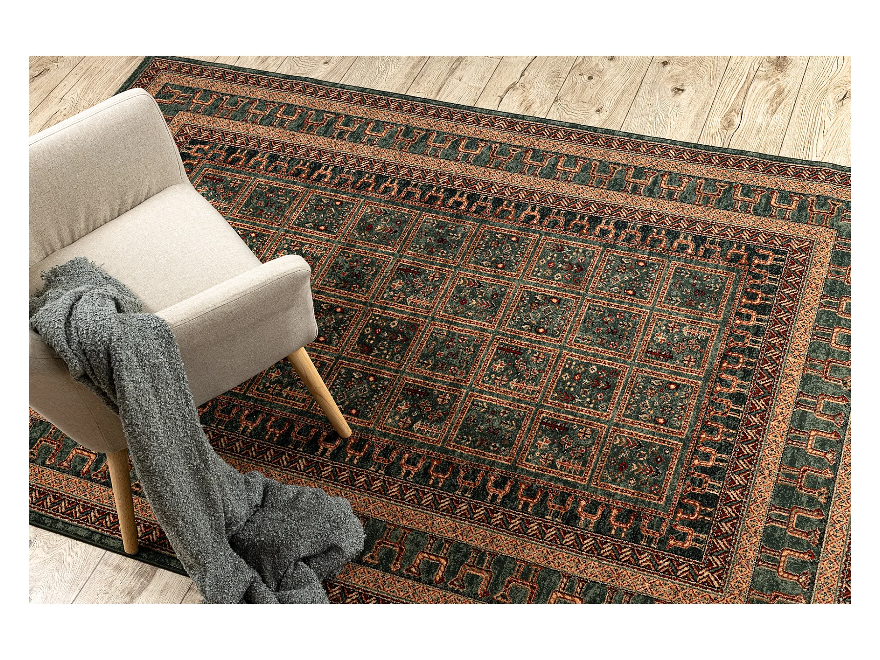 Wollen tapijt KASHQAI 4349 400 oosters, kader groen 135x200 cm