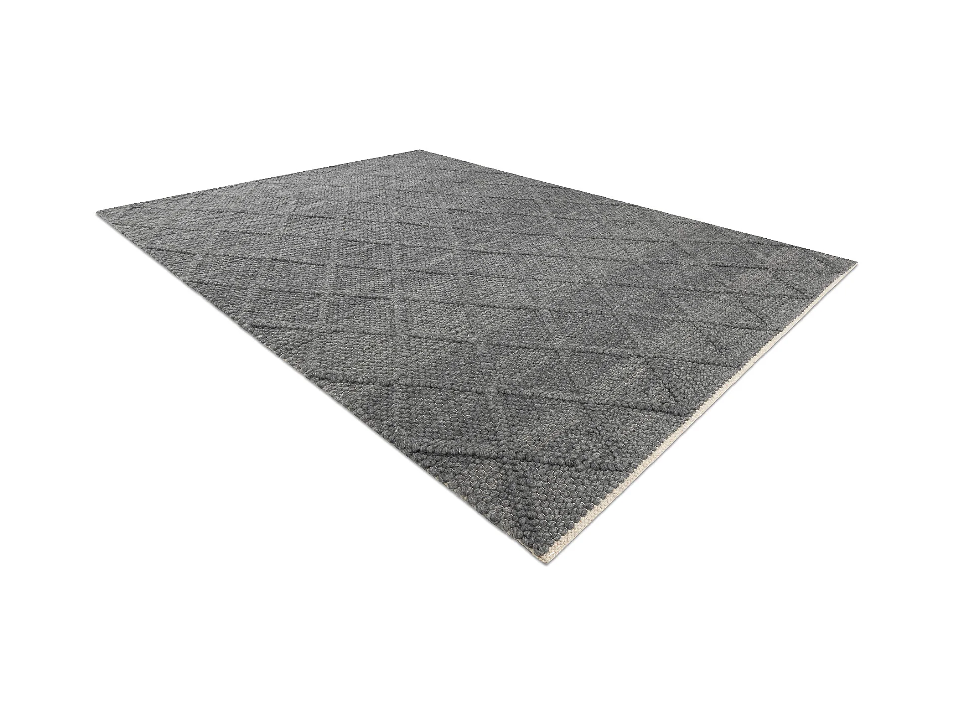 Wollen tapijt TAHAR 99001K antraciet - HANDGEWEVEN lus, ruiten, boho 200x290 cm