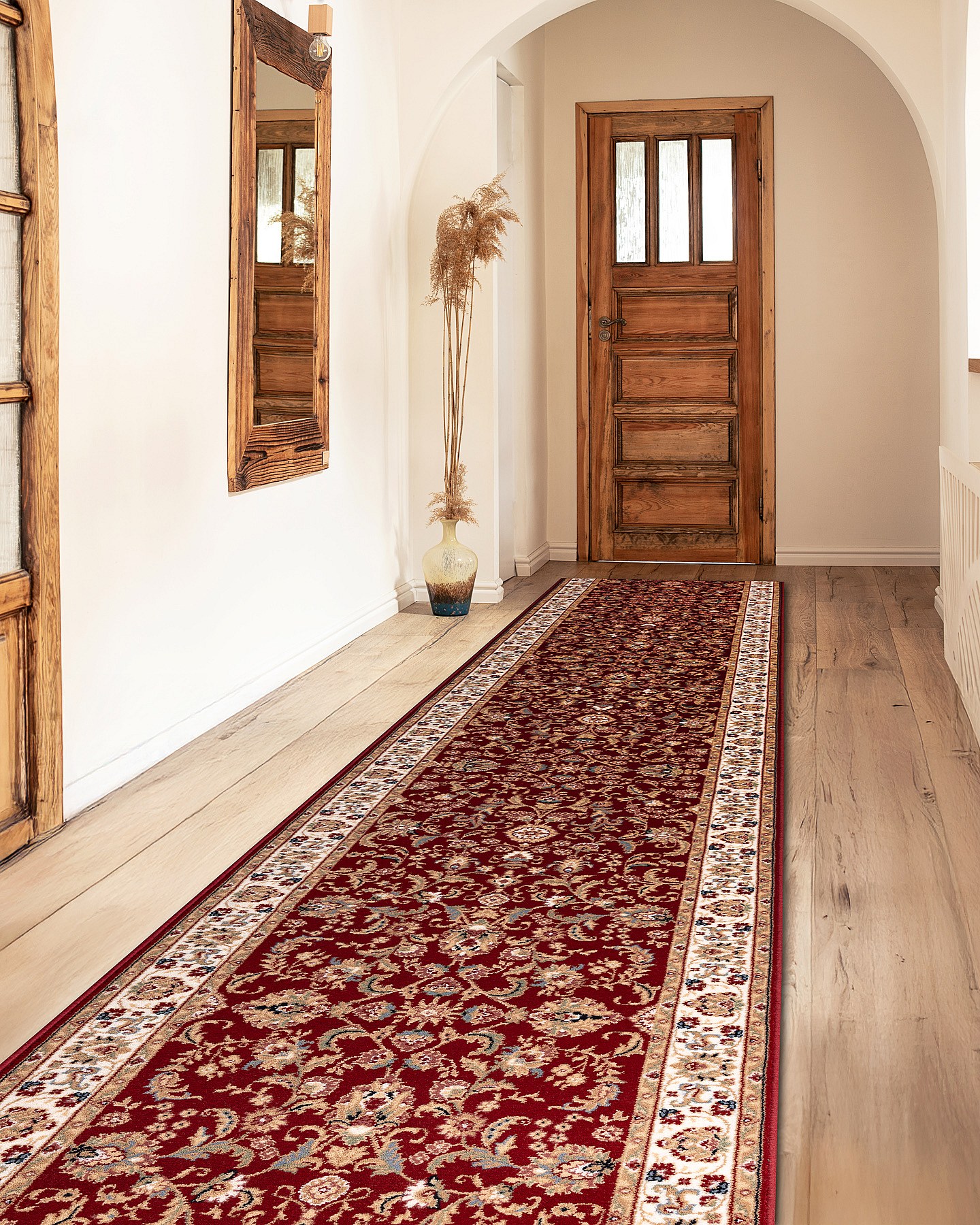 Wollen vloerbekleding NAIN Ornament, bloemen 144 51066 kastanjebruin / 80x300 cm