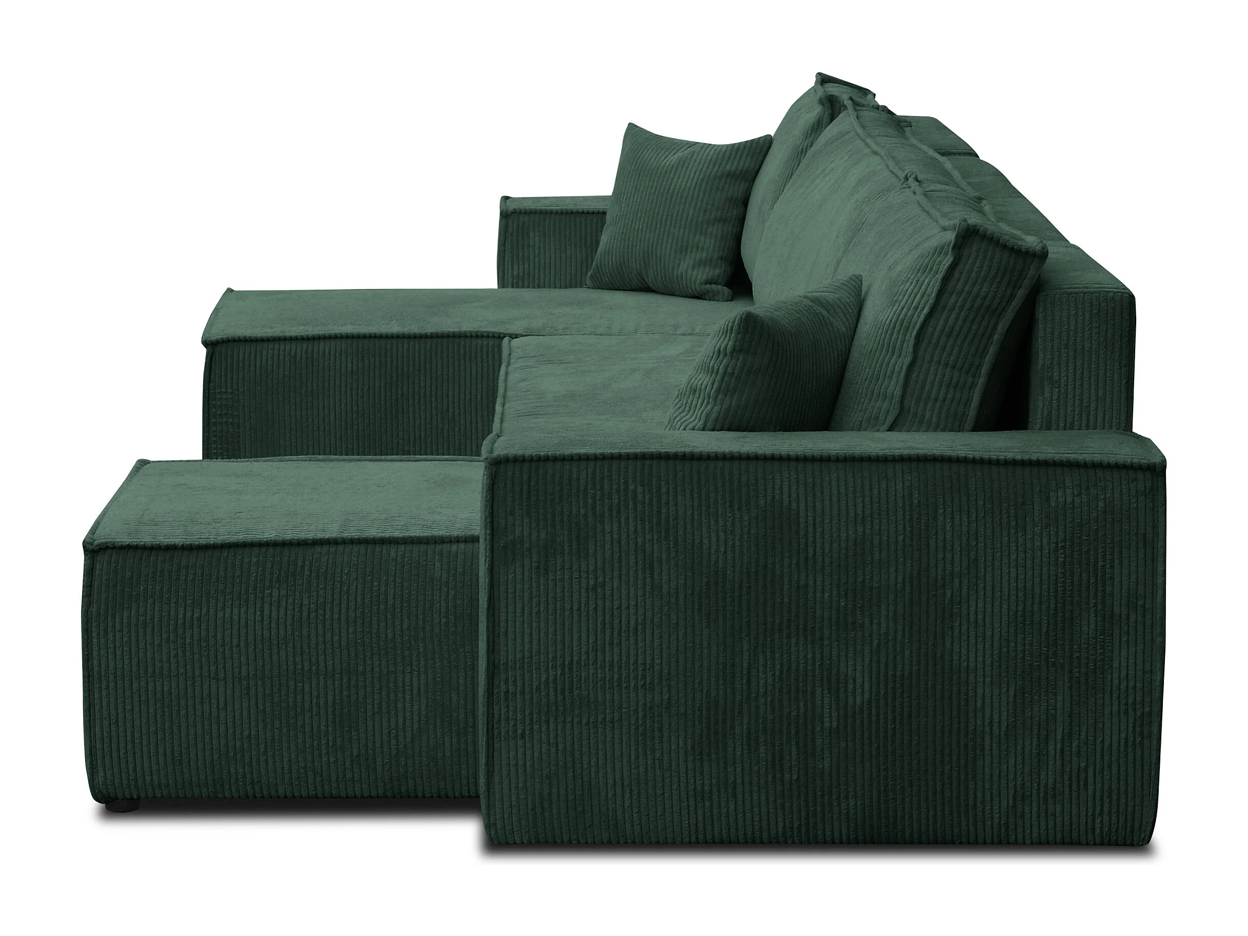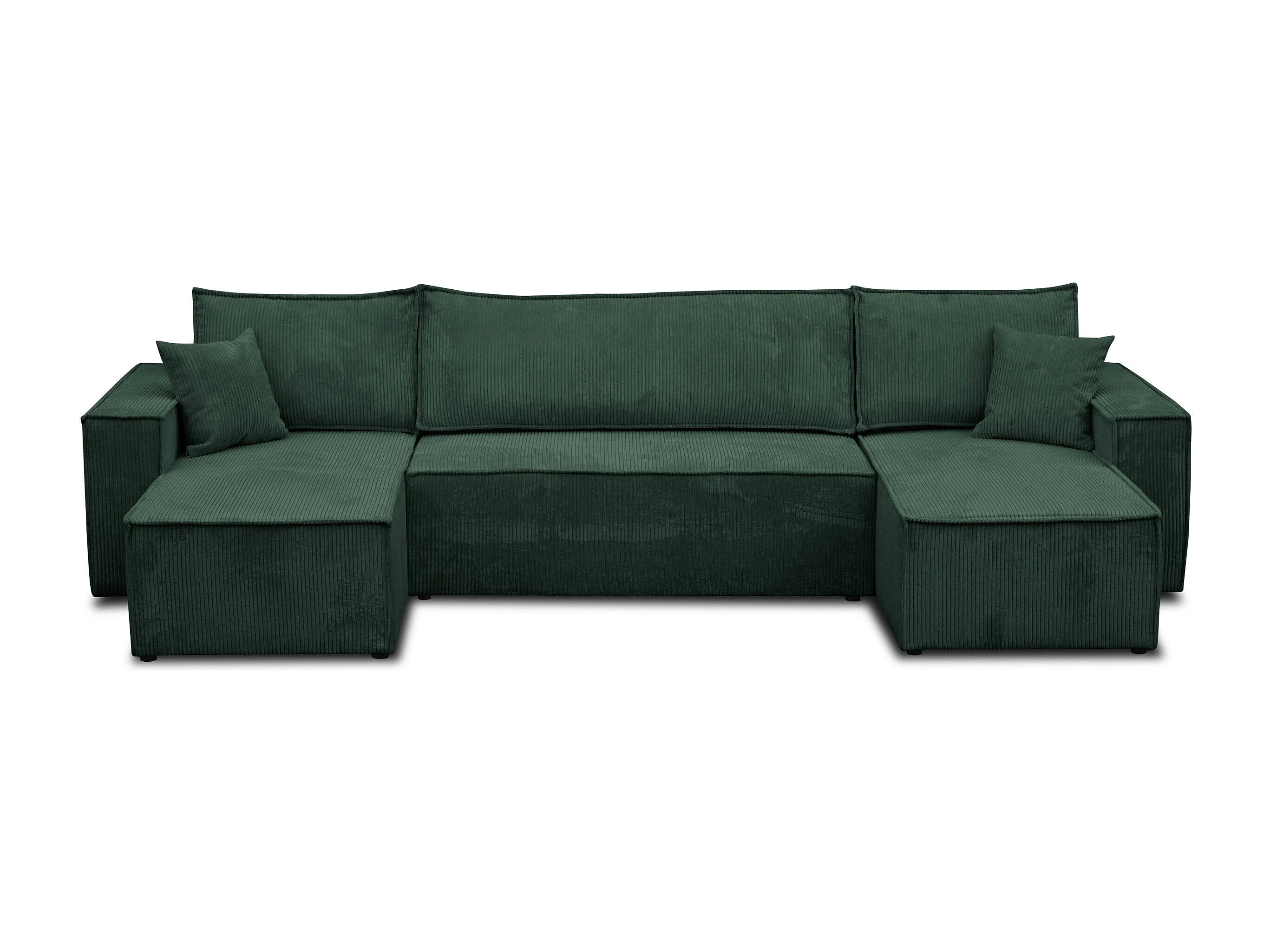 Woonkamermeubel Hugo U, U-vormige bank met slaapfunctie en bedbak, kleur: groen, corduroy