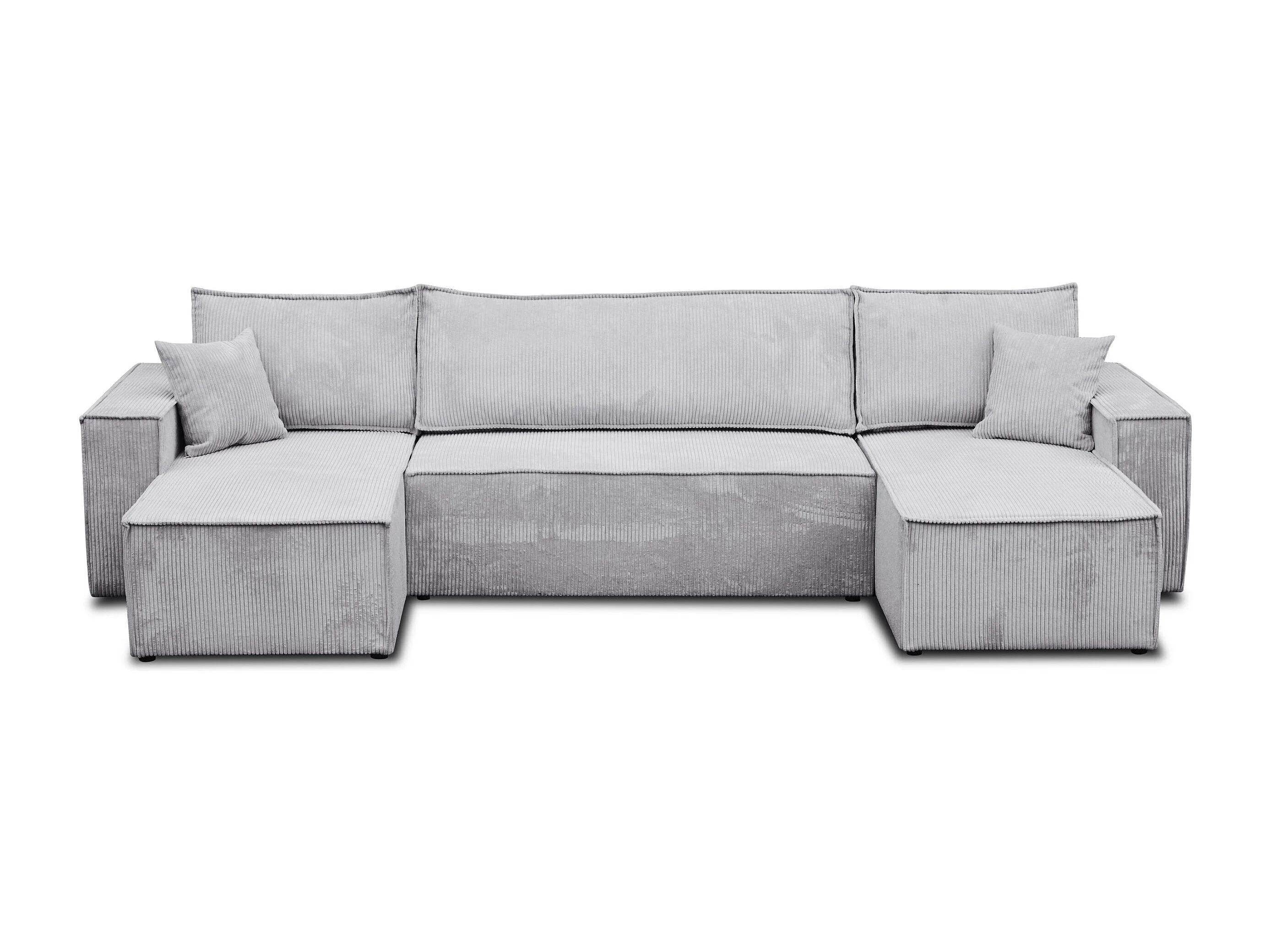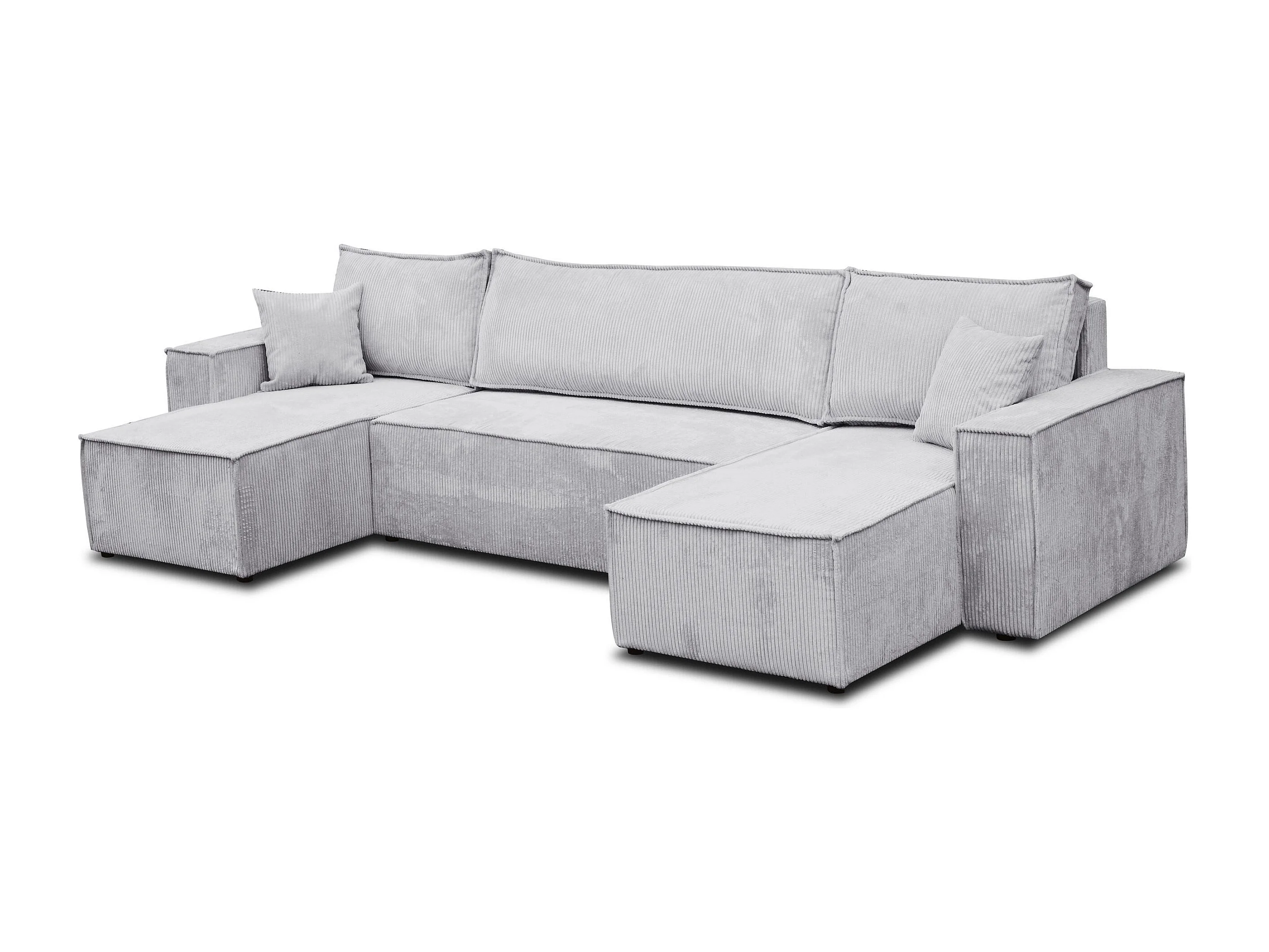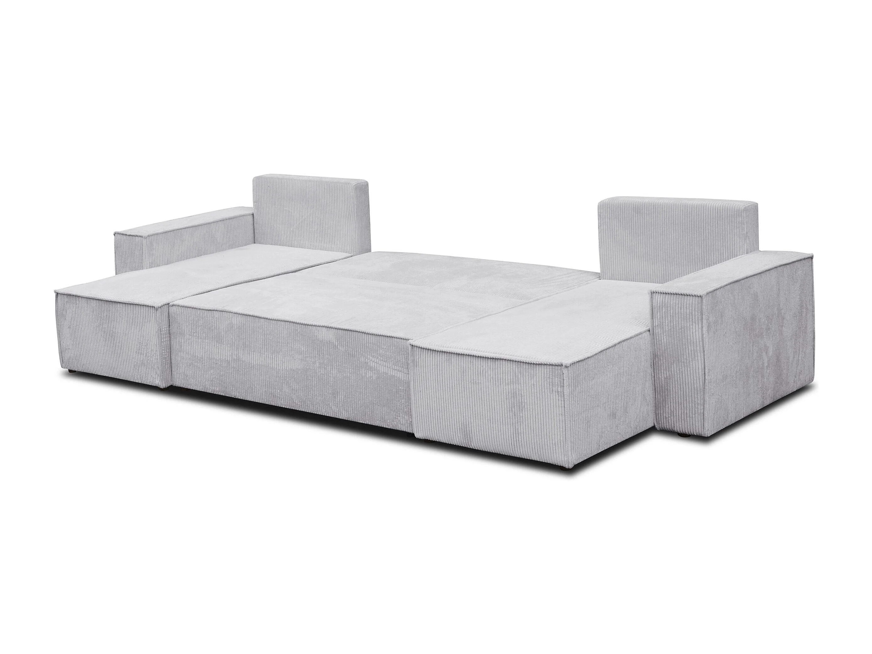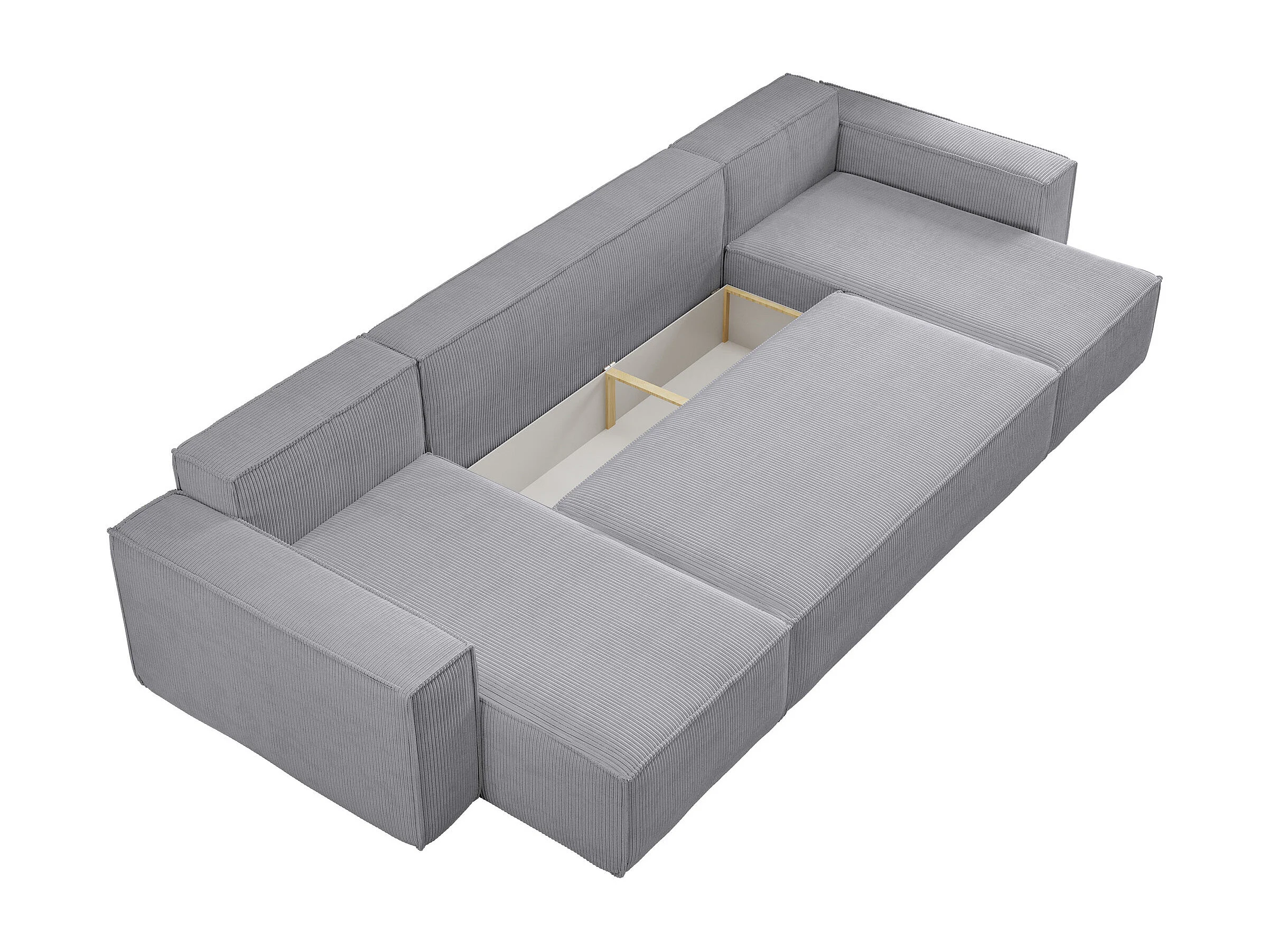 Woonkamermeubel Hugo U, U-vormige bank met slaapfunctie en bedbak, kleur: lichtgrijs, corduroy