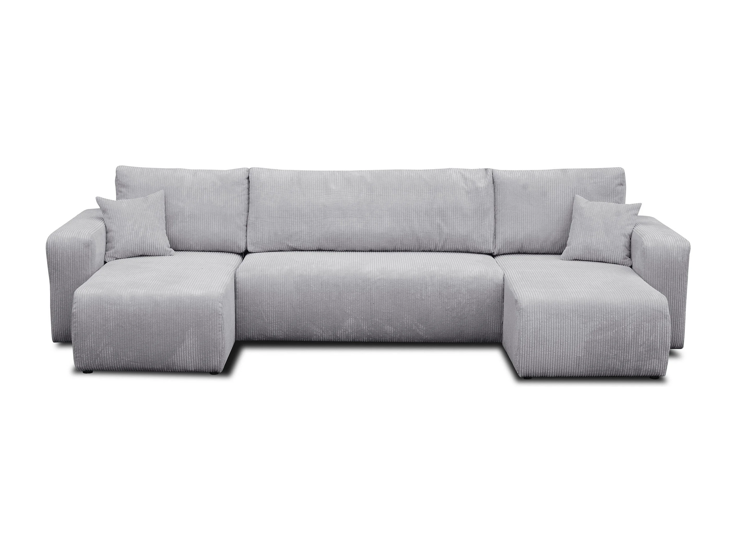 Woonkamermeubel Luna U, U-vormige bank met slaapfunctie en bedbak, kleur: lichtgrijs, corduroy