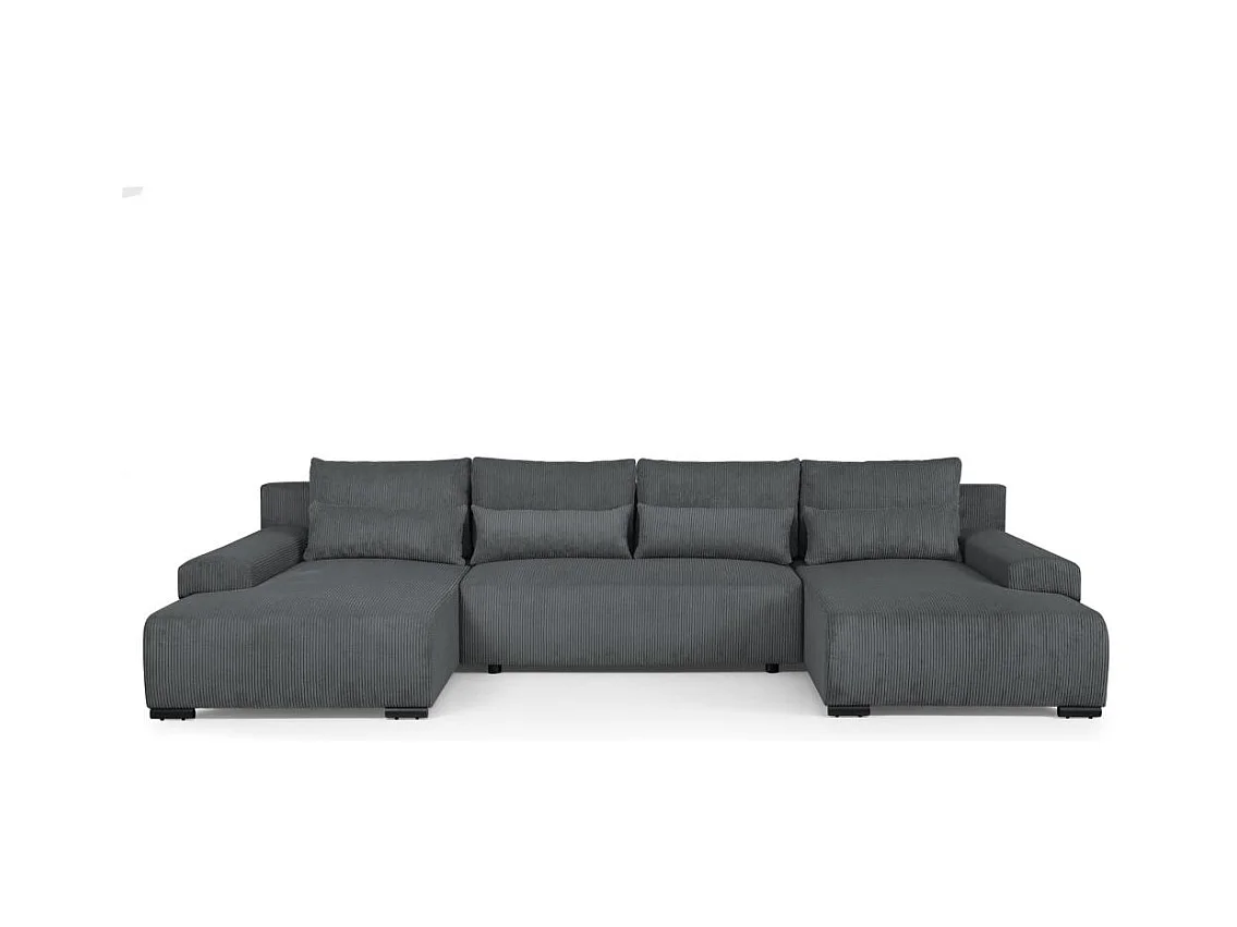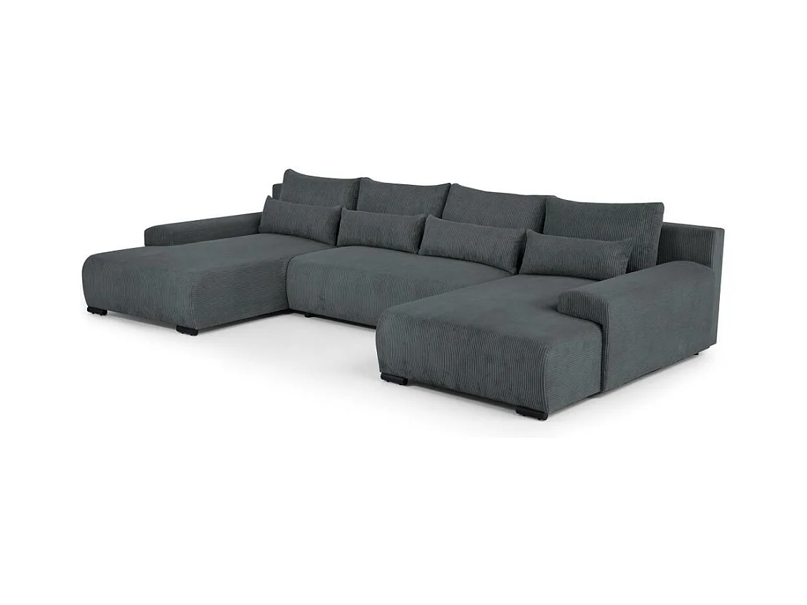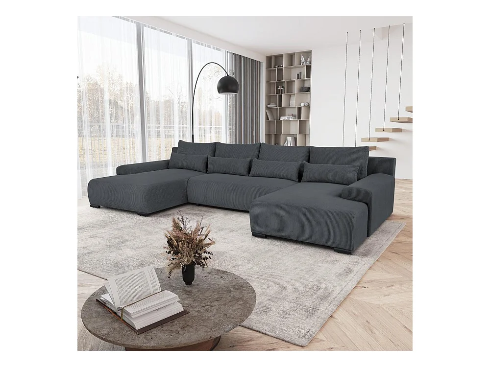 Emporius Sorlo U rechts Hoekbank met bedlade - sofa met slaapfunctie, gestoffeerde woonkamerbank - donkergrijs (Amor Velvet 4321)