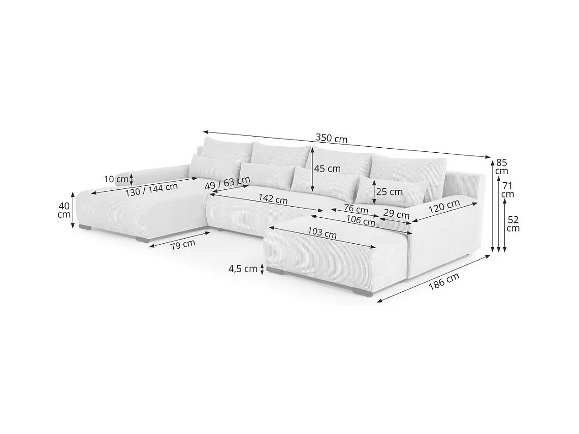 WOONLANDSCHAP Parys U met slaapfunctie grijs